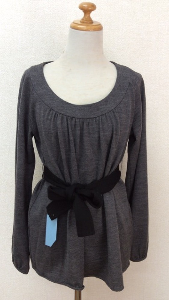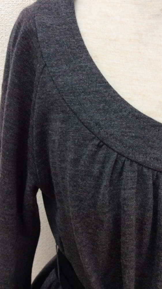| 管理番号:99^124569 ドレステリア 濃いめグレーのカットソー 黒の布ベルト 日本製 毛100% 表示サイズ:なし 実寸(参考)