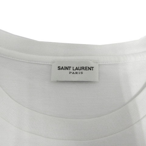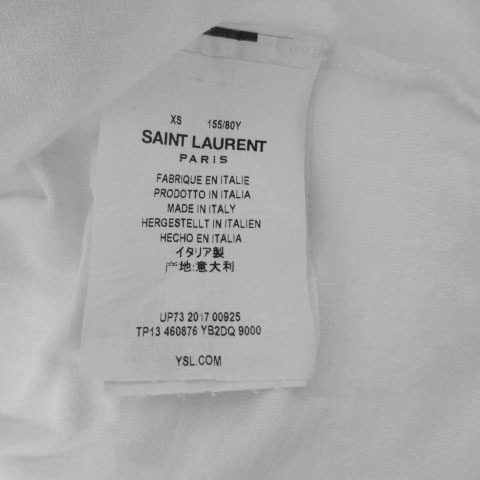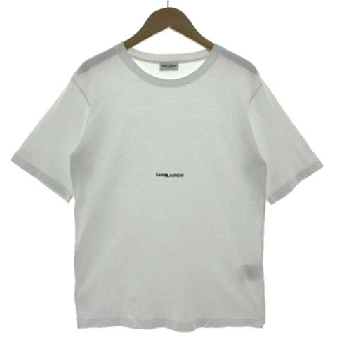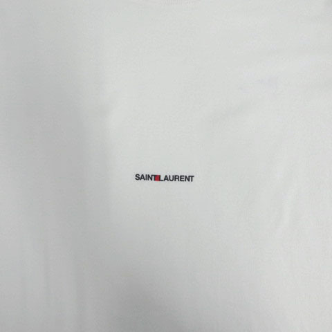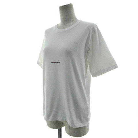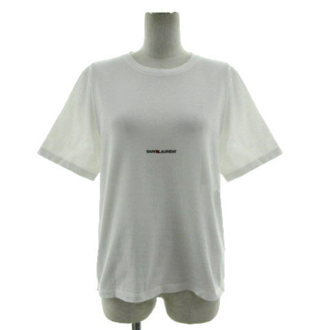 イヴサンローラン YVES SAINT LAURENT Tシャツ ロゴプリント 半袖 イタリア製 コットン ホワイト 白 XS レディース