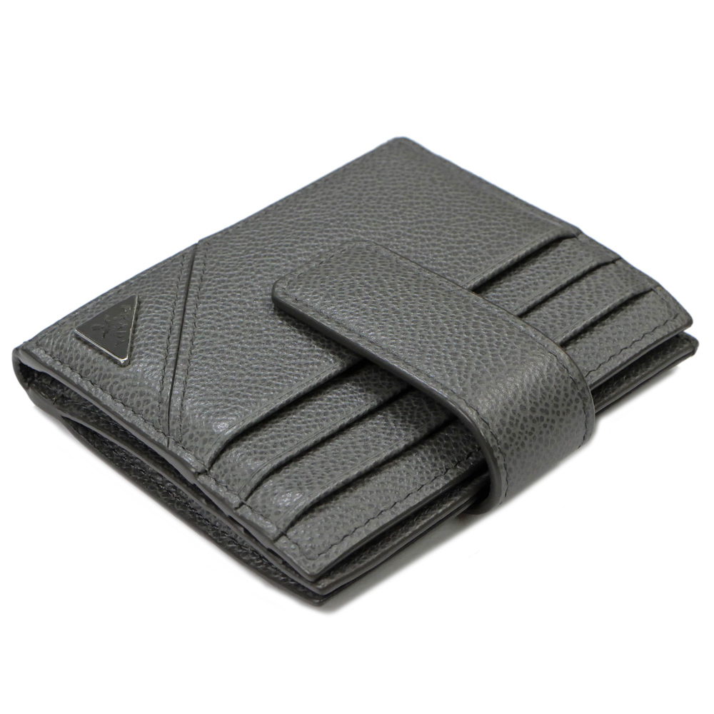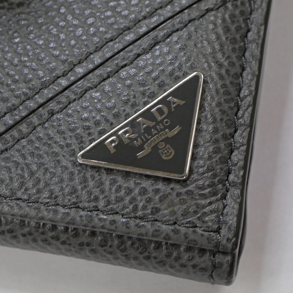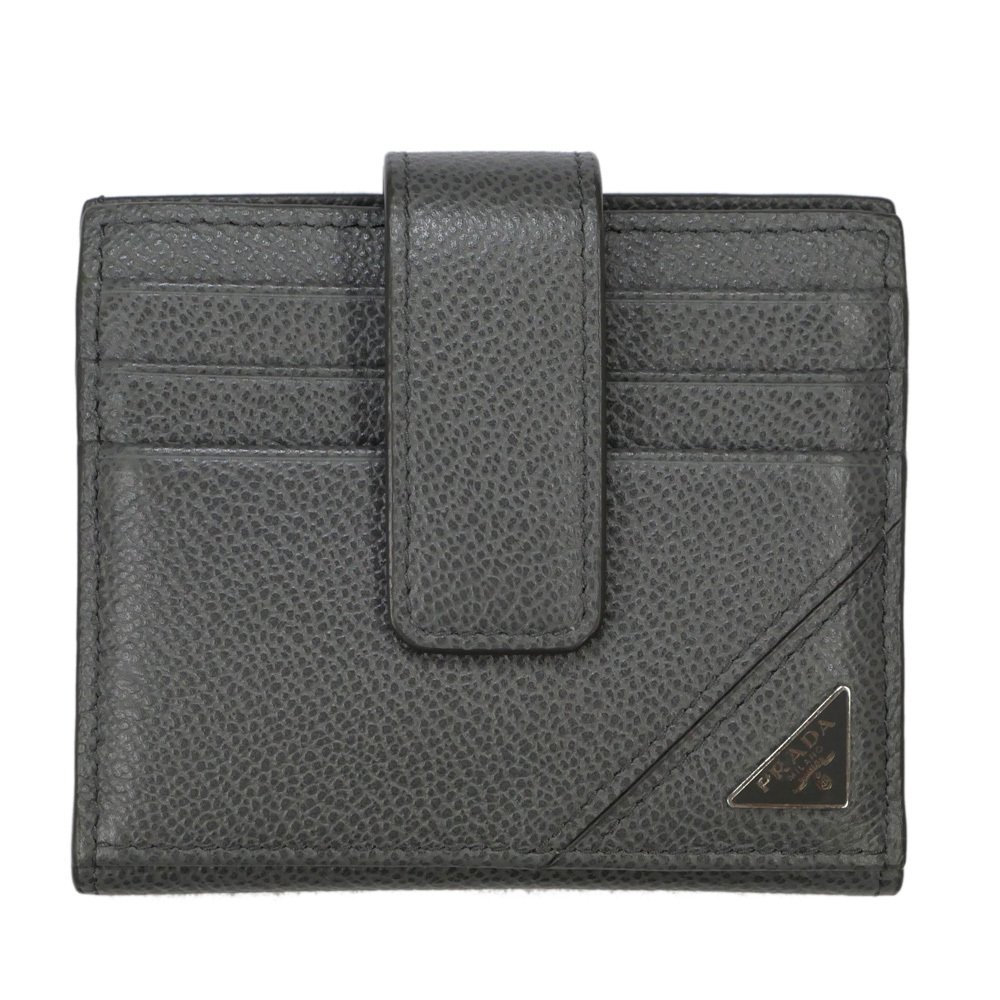 【名東】プラダ カードケース 2MC049 グレー 2つ折り レザー 小物