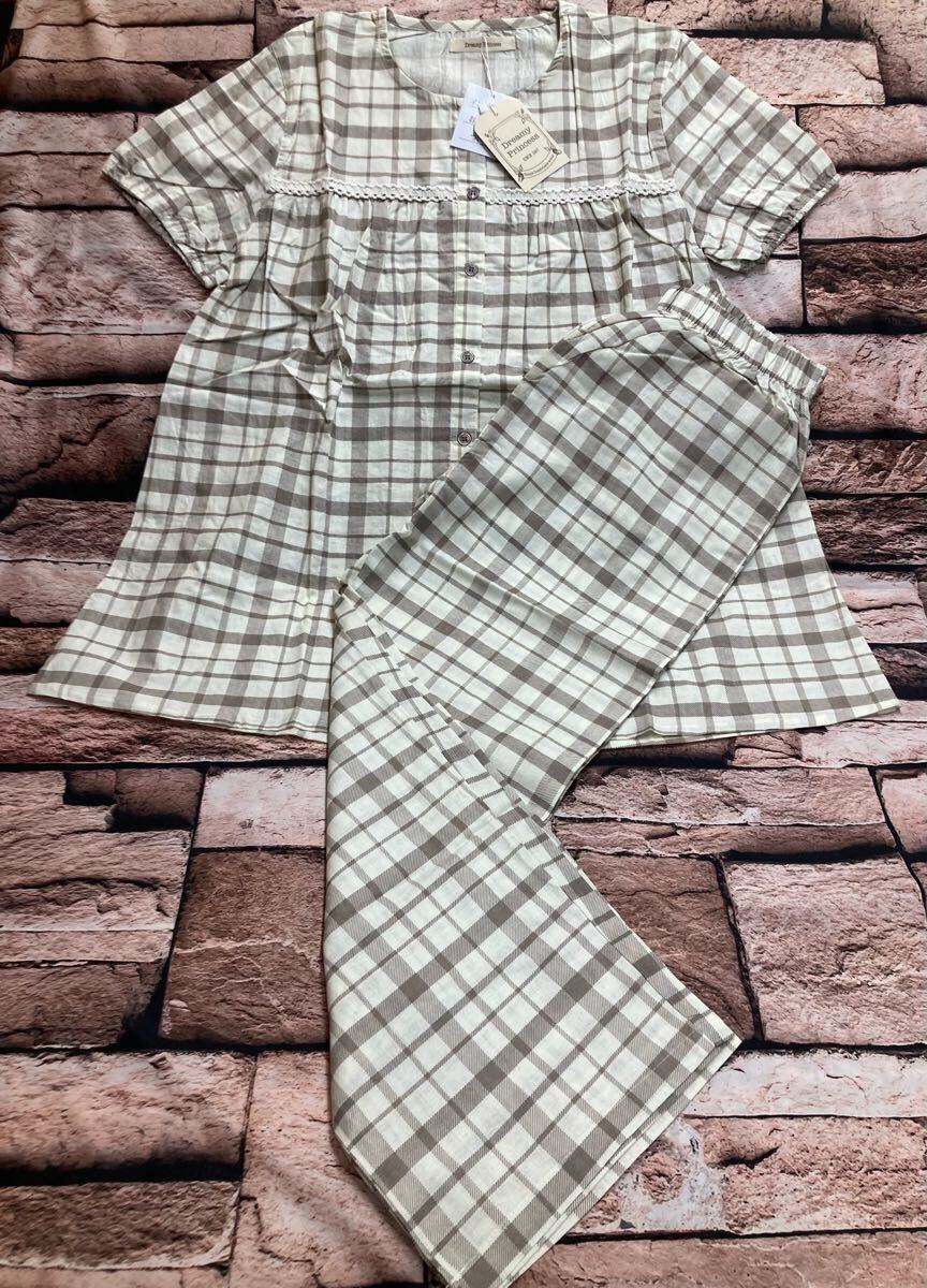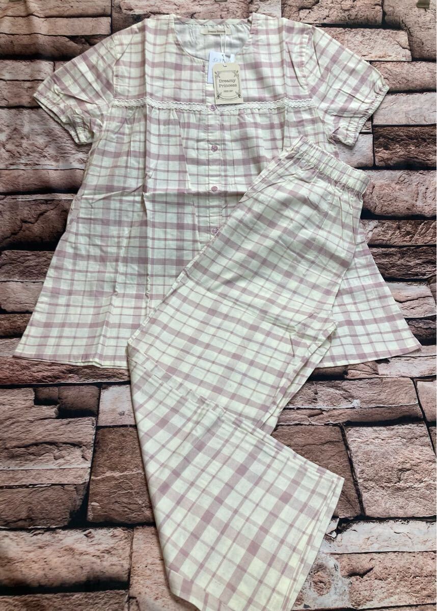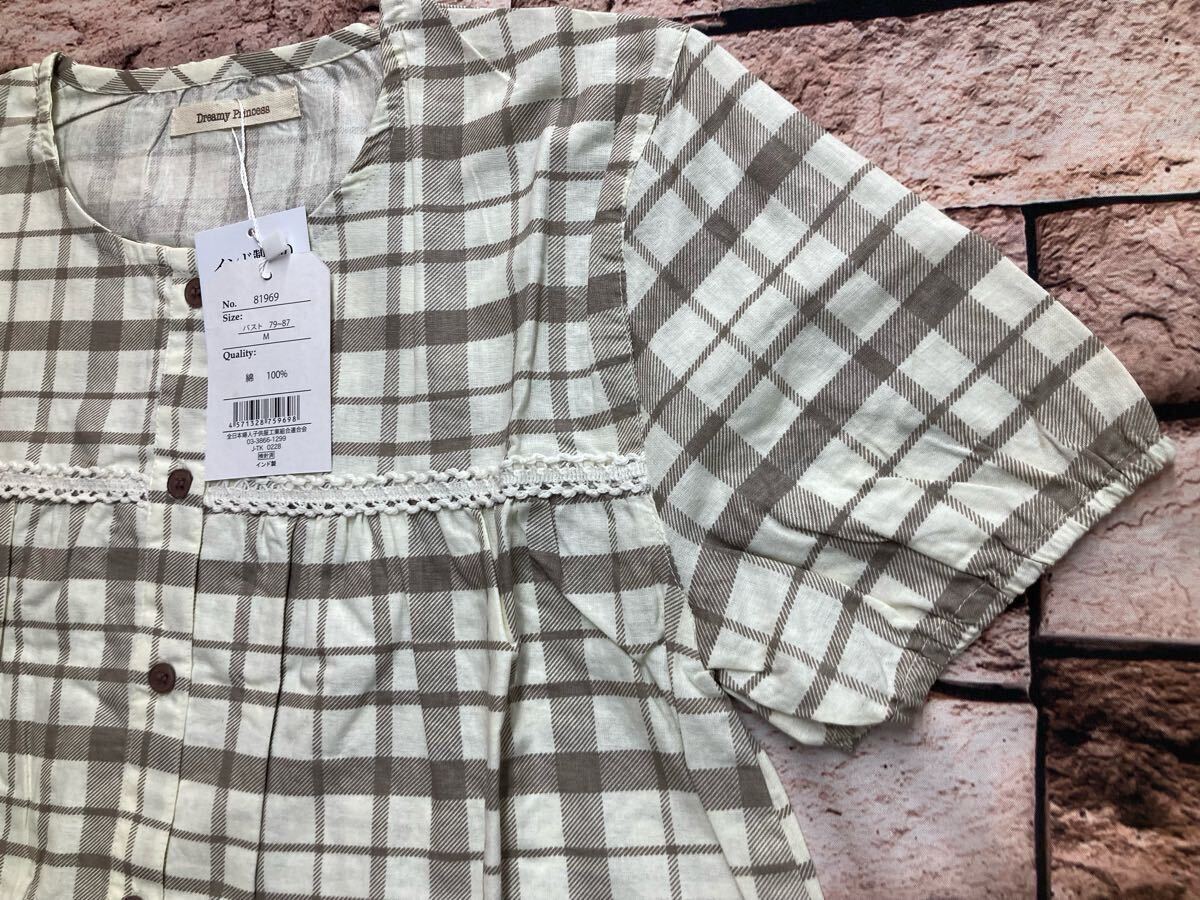 送料無料!さらさら快適!インド綿100% チェック柄 レディースパジャマ(2色から)1組