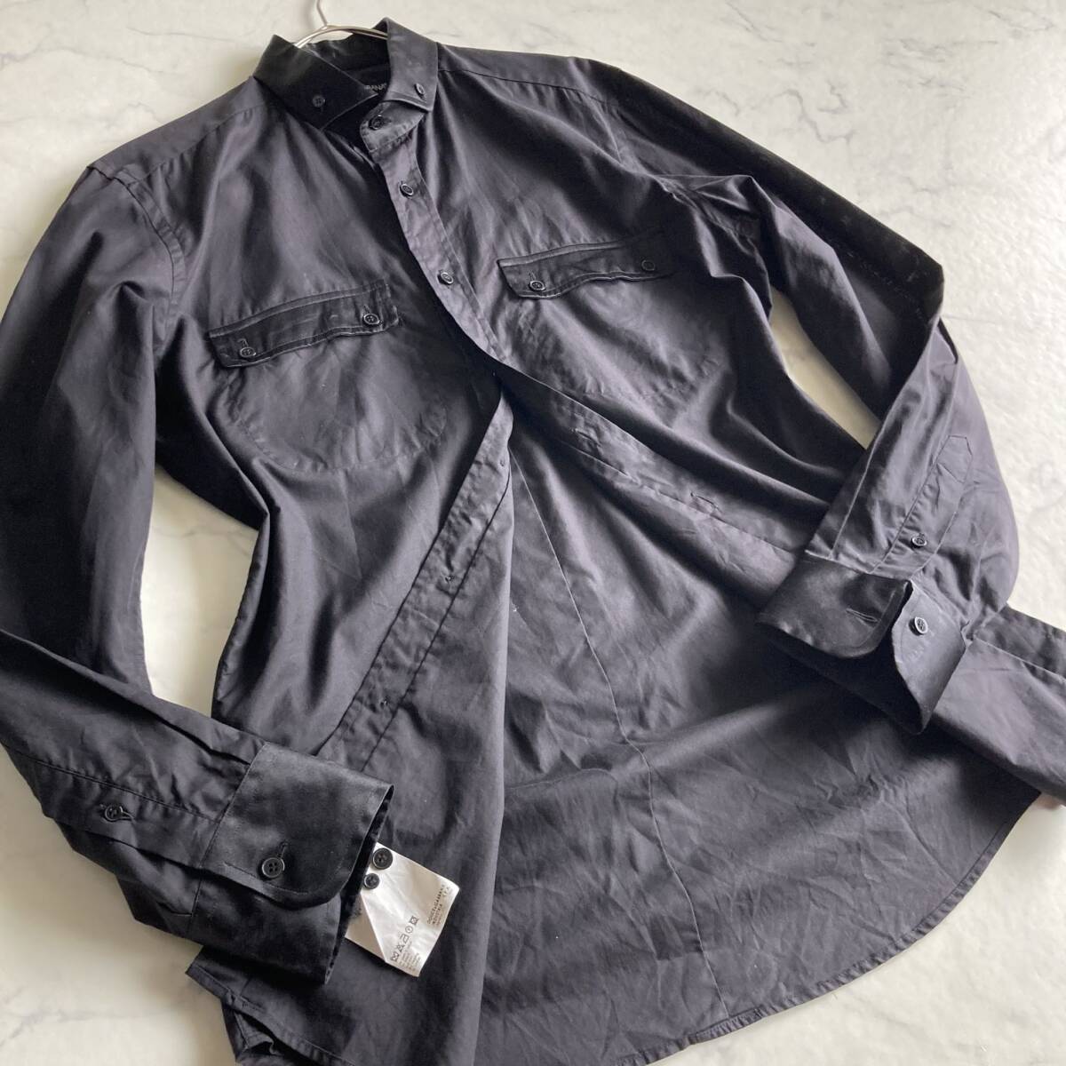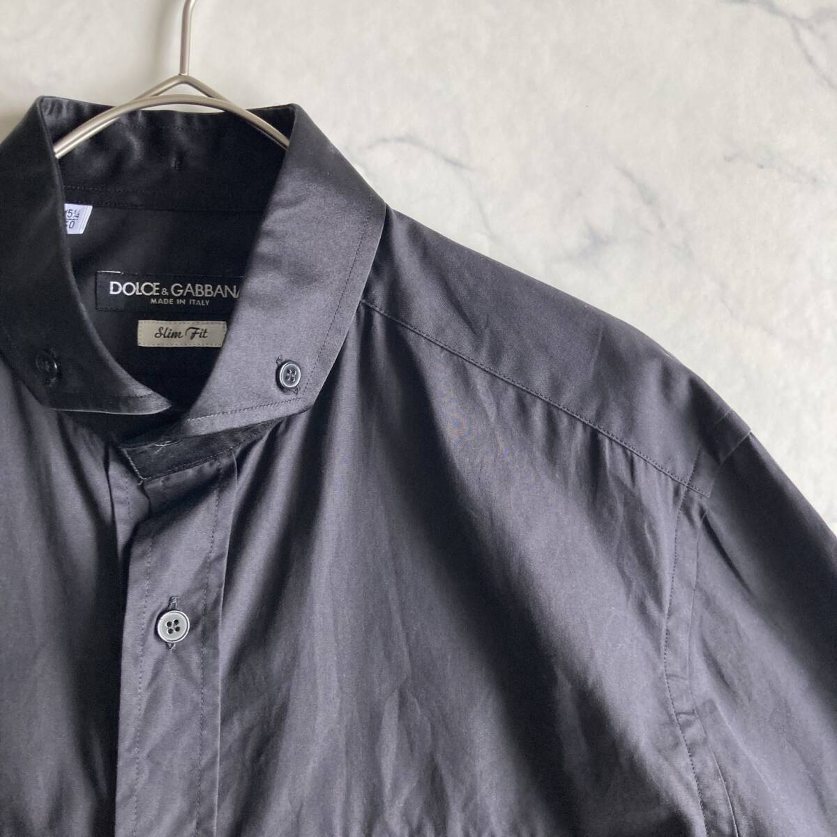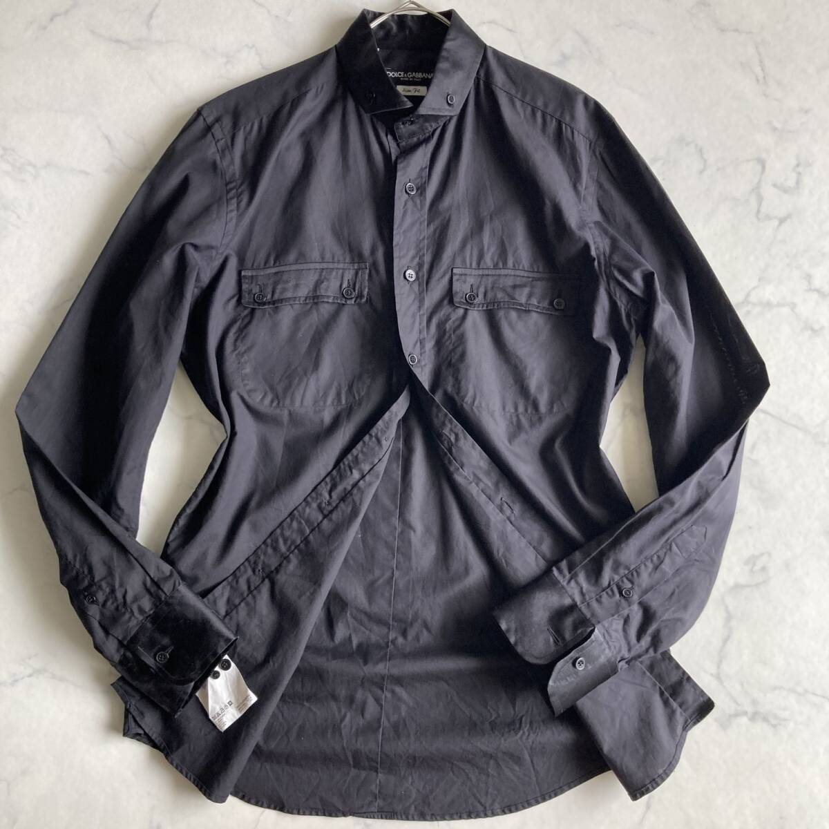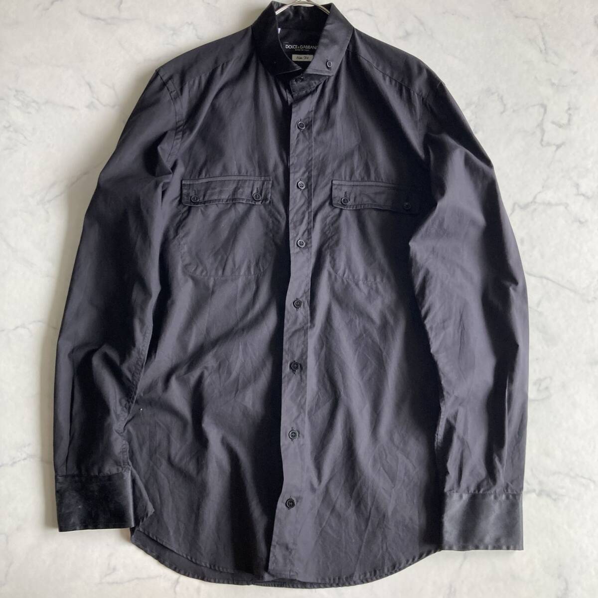 サイズM相当◎【大人の品格を引き立てる高級シャツ】■ドルチェ&ガッバーナ■ ブラック シルク 長袖BDシャツ カジュアル ドレス 黒