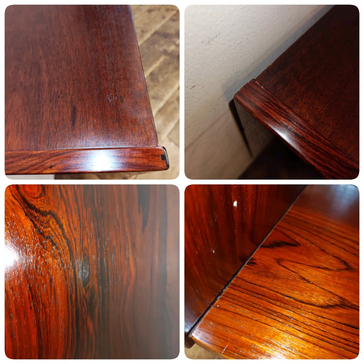ワシントン条約で規制対象になったため入手が出来なくなったため、希少価値が高いローズウッド材の家具はビンテージ品ならではです。