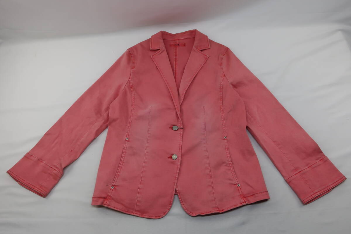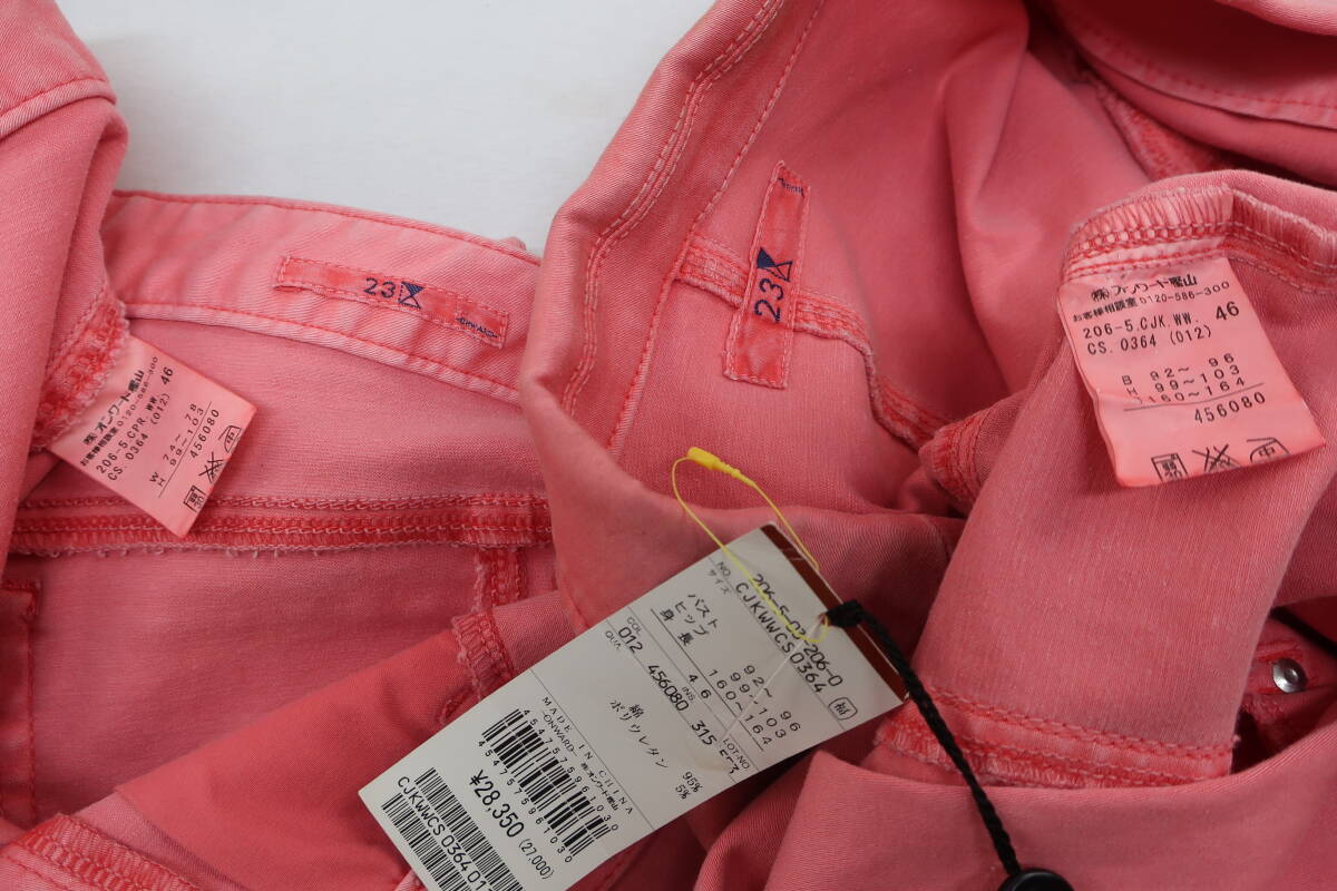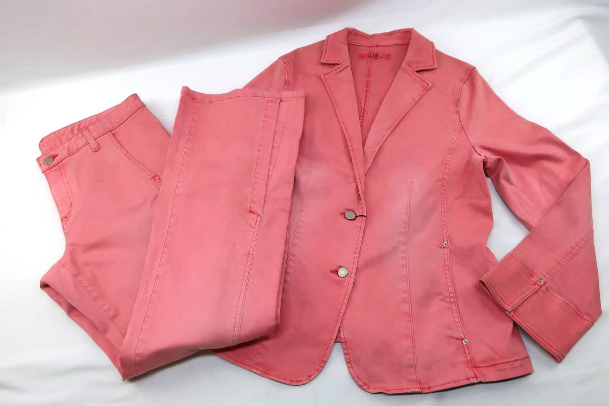【送900円】766 タグ付き品 23区 ニジュウサンク セットアップ ジャケット&パンツ 長袖 スリット 綿他 単色 ピンク 46