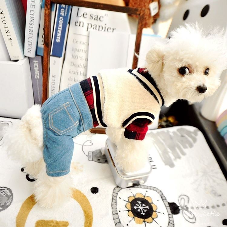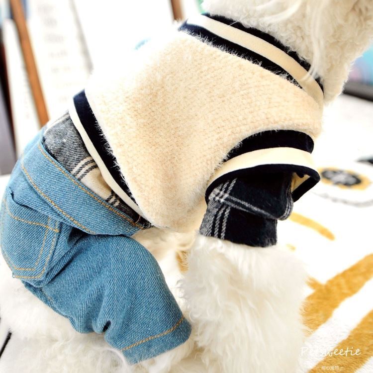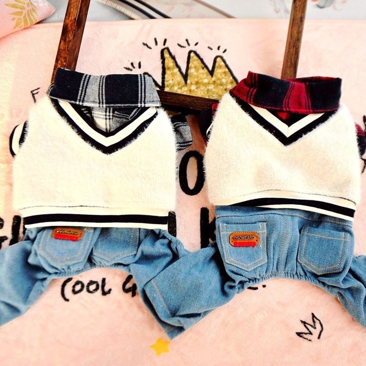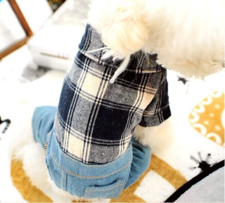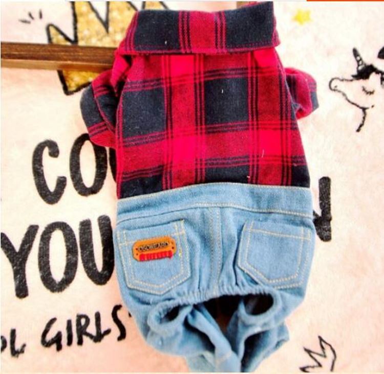 【犬用2点セット】チェック柄デニムジャケット&パンツつなぎ おしゃれコスチューム お散歩用 ドッグウェア ペット服 ワンちゃん服 犬洋服 | |||