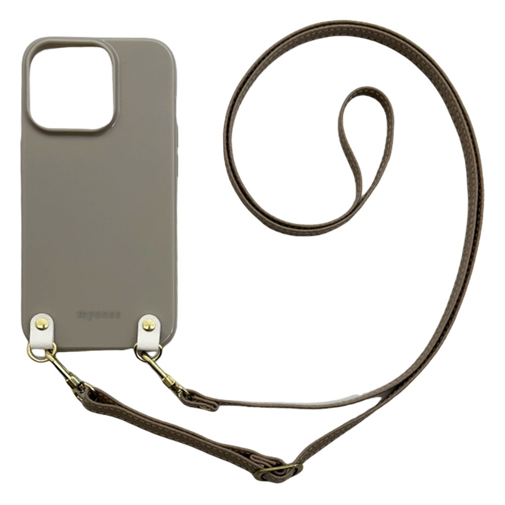 キッズケータイ KY-41C スマホケース(くすみグレー/グレージュ)ソフトケース ストラップ 肩掛け 首かけ