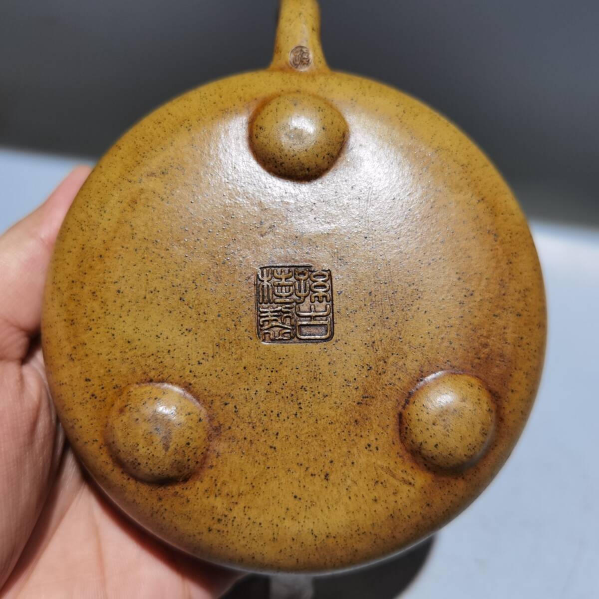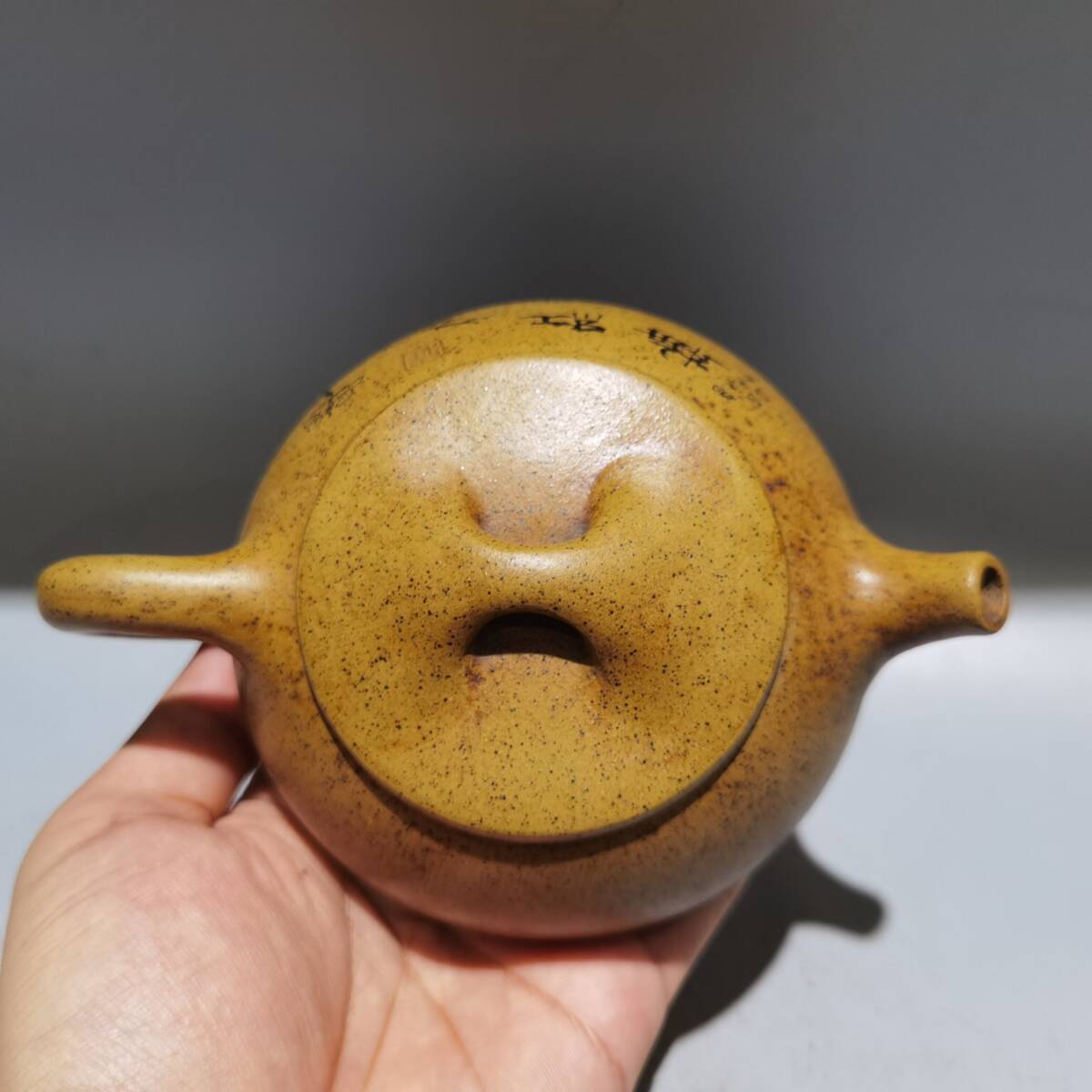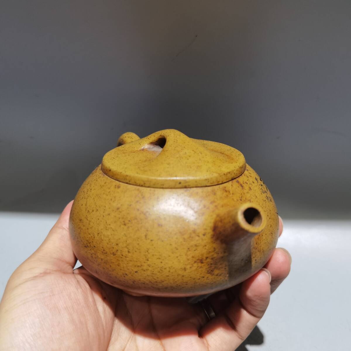 【超珍館蔵】紫砂壺 石瓢壺 老藝人款 黄段砂 茶具 茶道品 置物 賞物 古賞物 古董品 古美術品 時代物 旧家蔵出 稀少珍蔵品