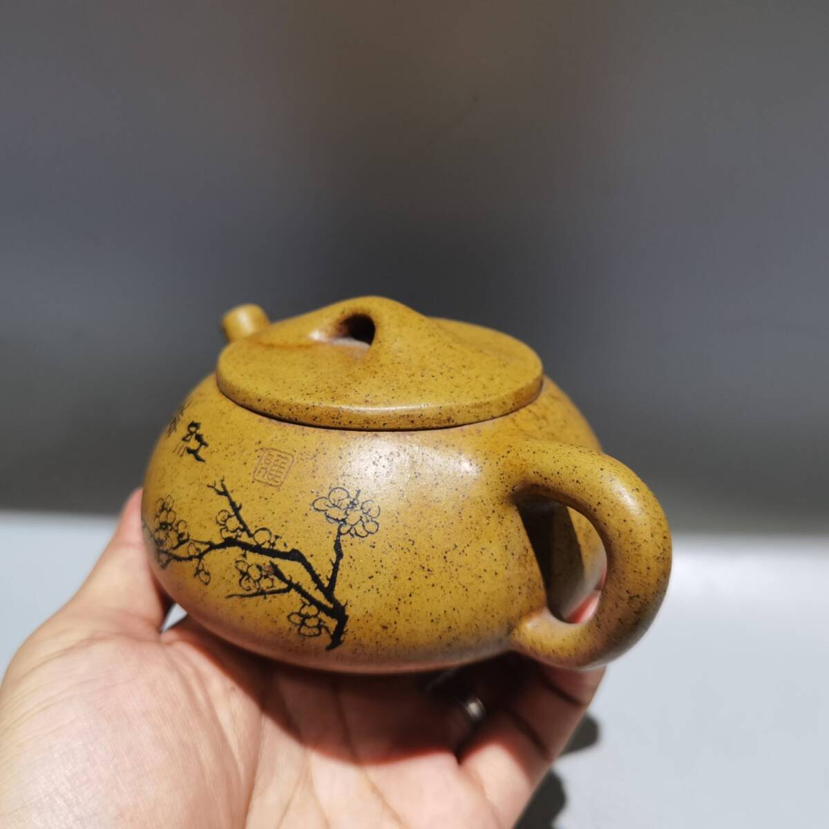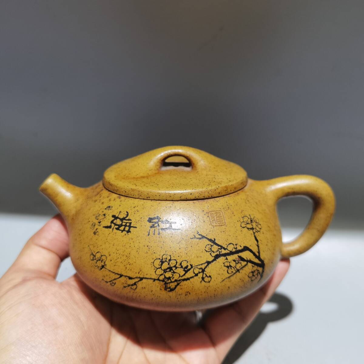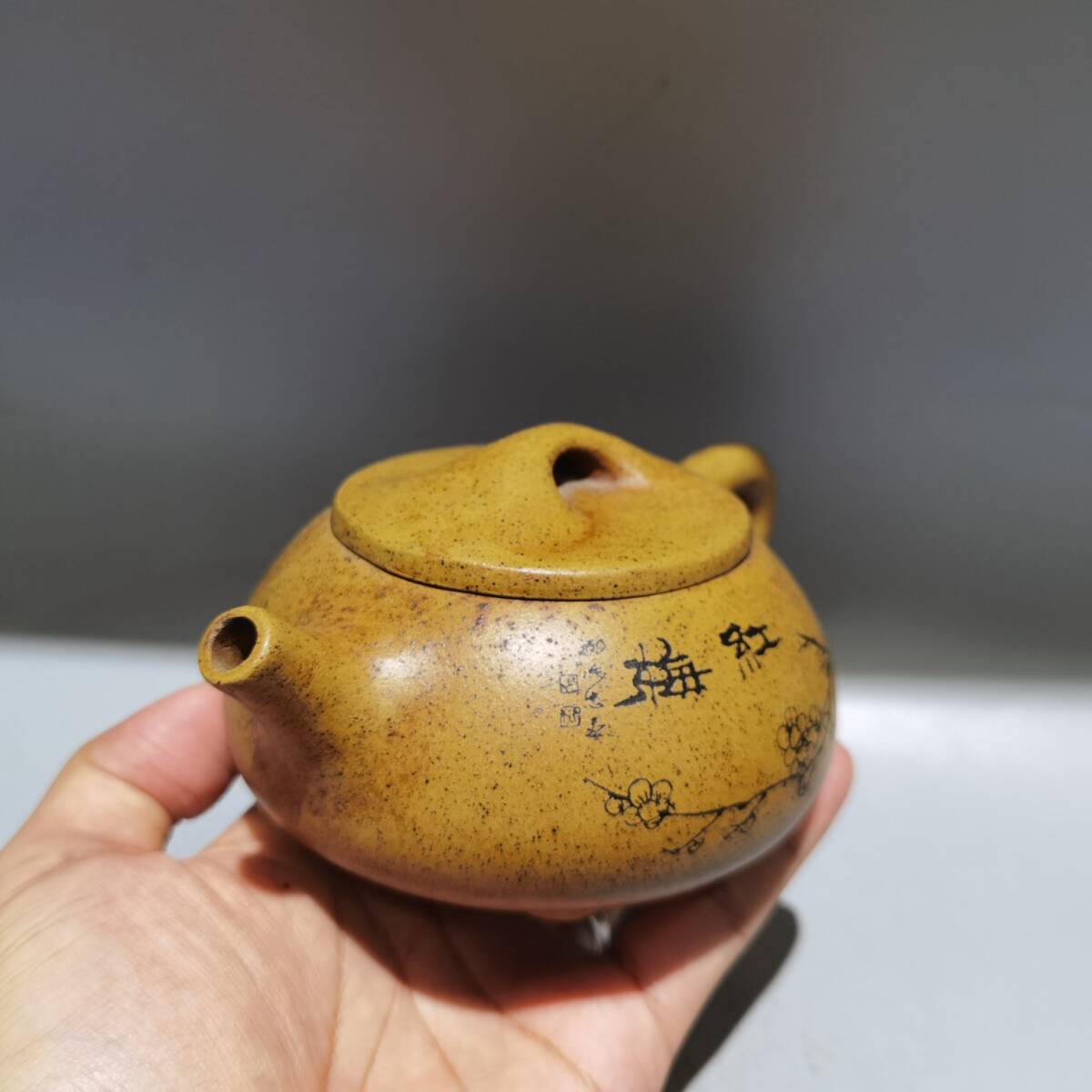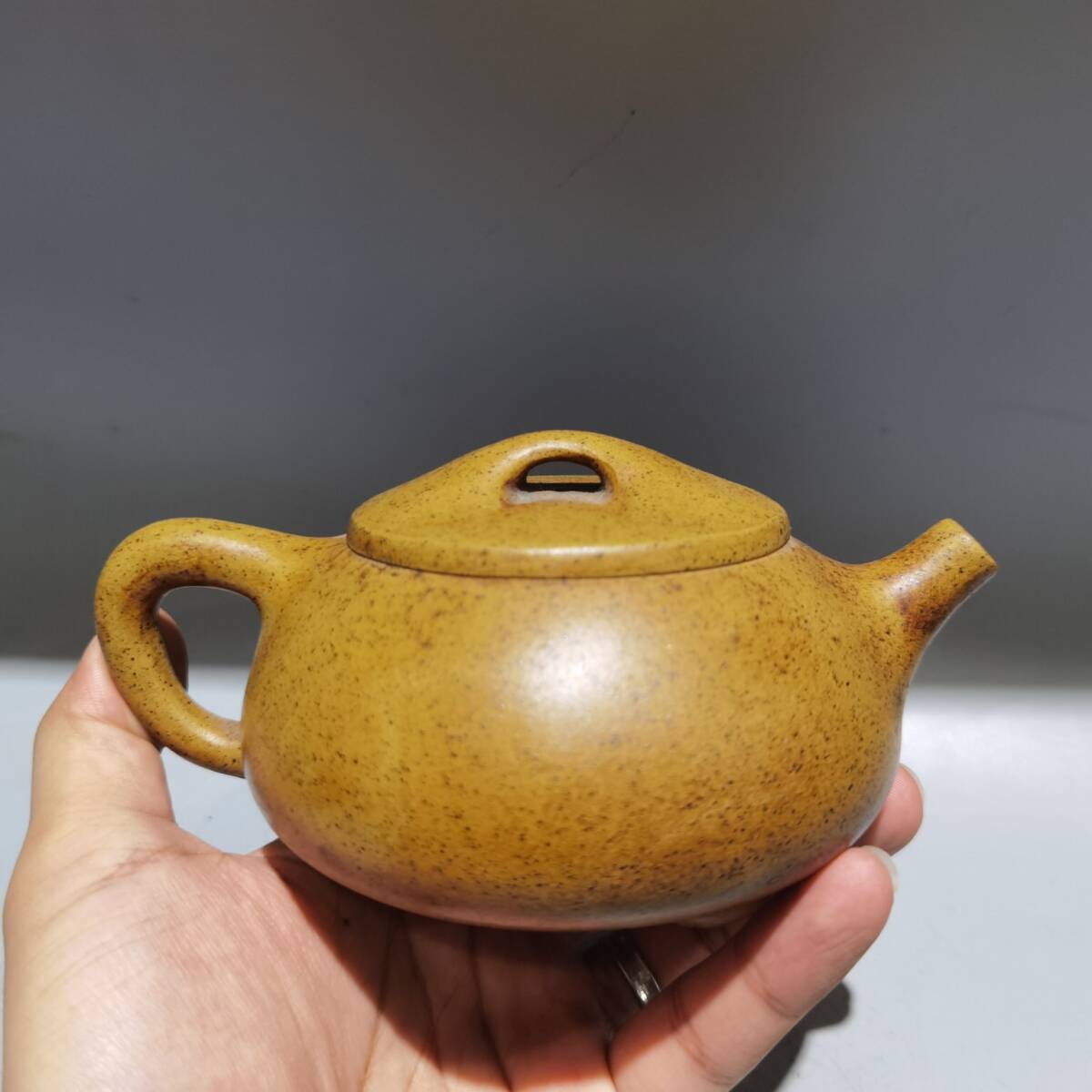 【超珍館蔵】紫砂壺 石瓢壺 老藝人款 黄段砂 茶具 茶道品 置物 賞物 古賞物 古董品 古美術品 時代物 旧家蔵出 稀少珍蔵品