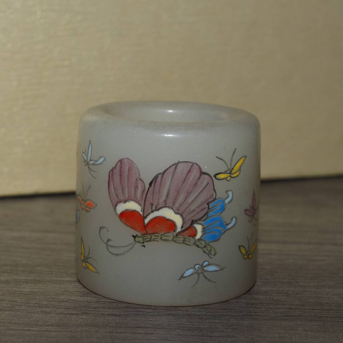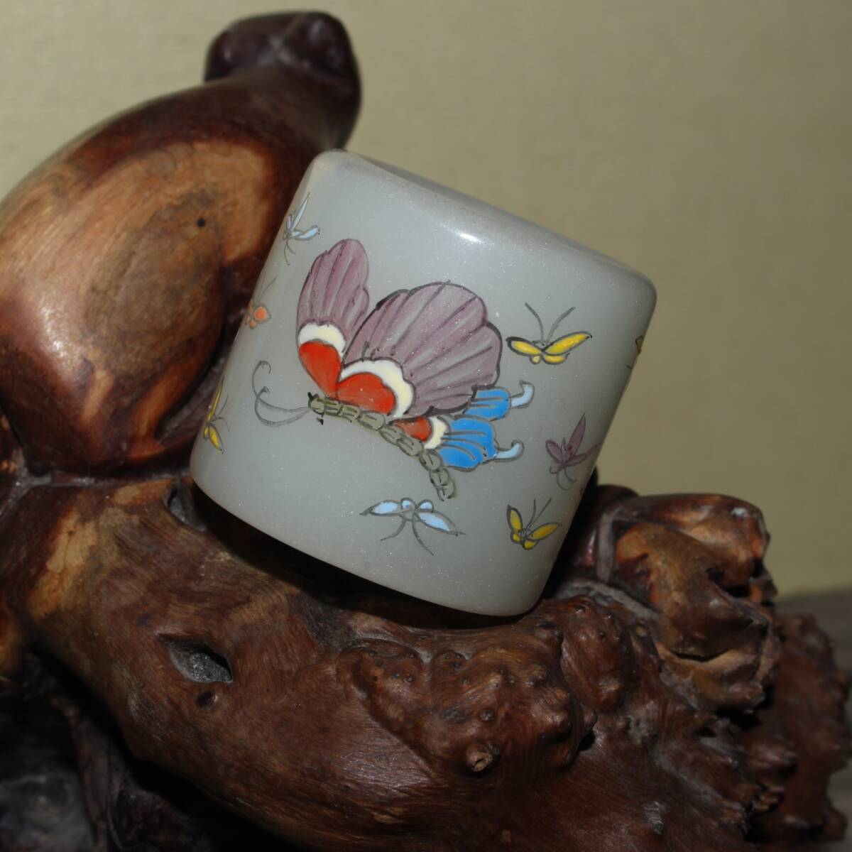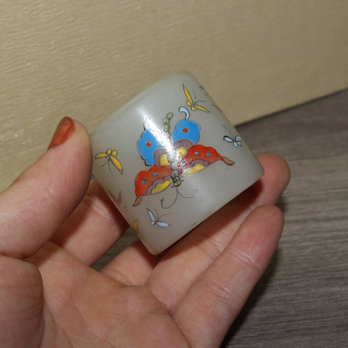 【超珍館蔵】琉璃製 細密彫 描金 彩繪 蝴蝶紋 指輪 根付 裝身具 古賞物 古董品 古美術品 時代物 旧家蔵出 稀少珍蔵品