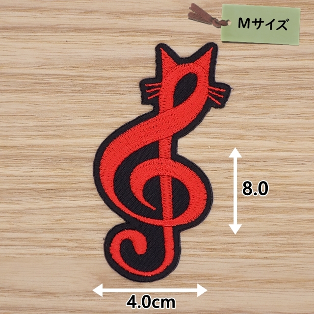 アイロンワッペン( 音符ネコ 赤)(Mサイズ)