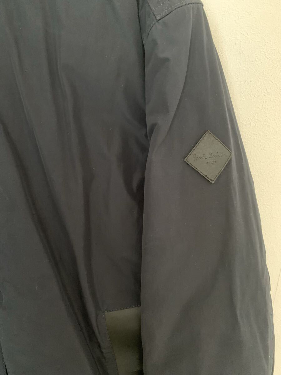 ★美品★ Paul smith jeans ポールスミス ダウンジャケット フーデッド ネイビー Mサイズ レザー