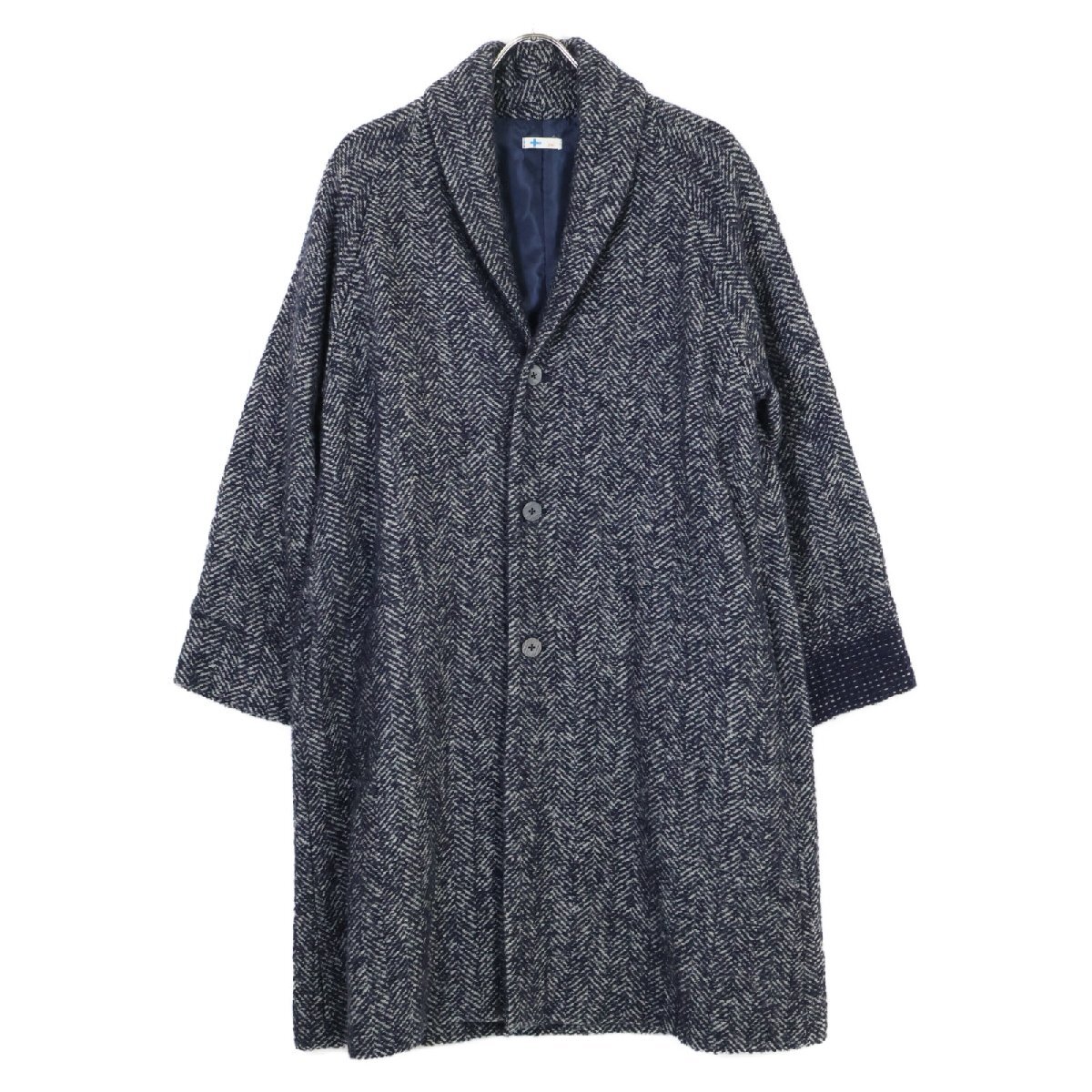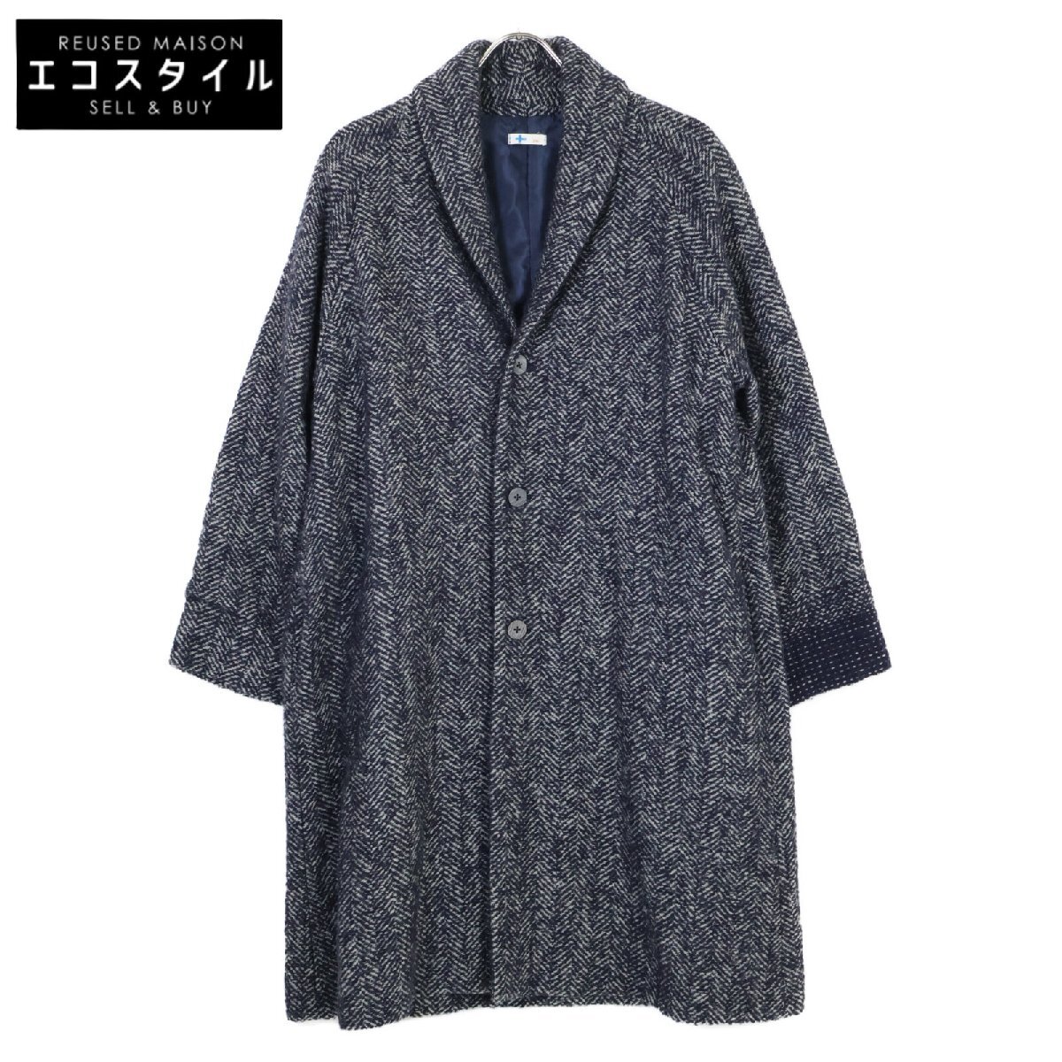 vm ヴーム VFCO-9640D グレー ヘリンボーン チェスターコート ネイビー O ジャケット ウール レディース 中古