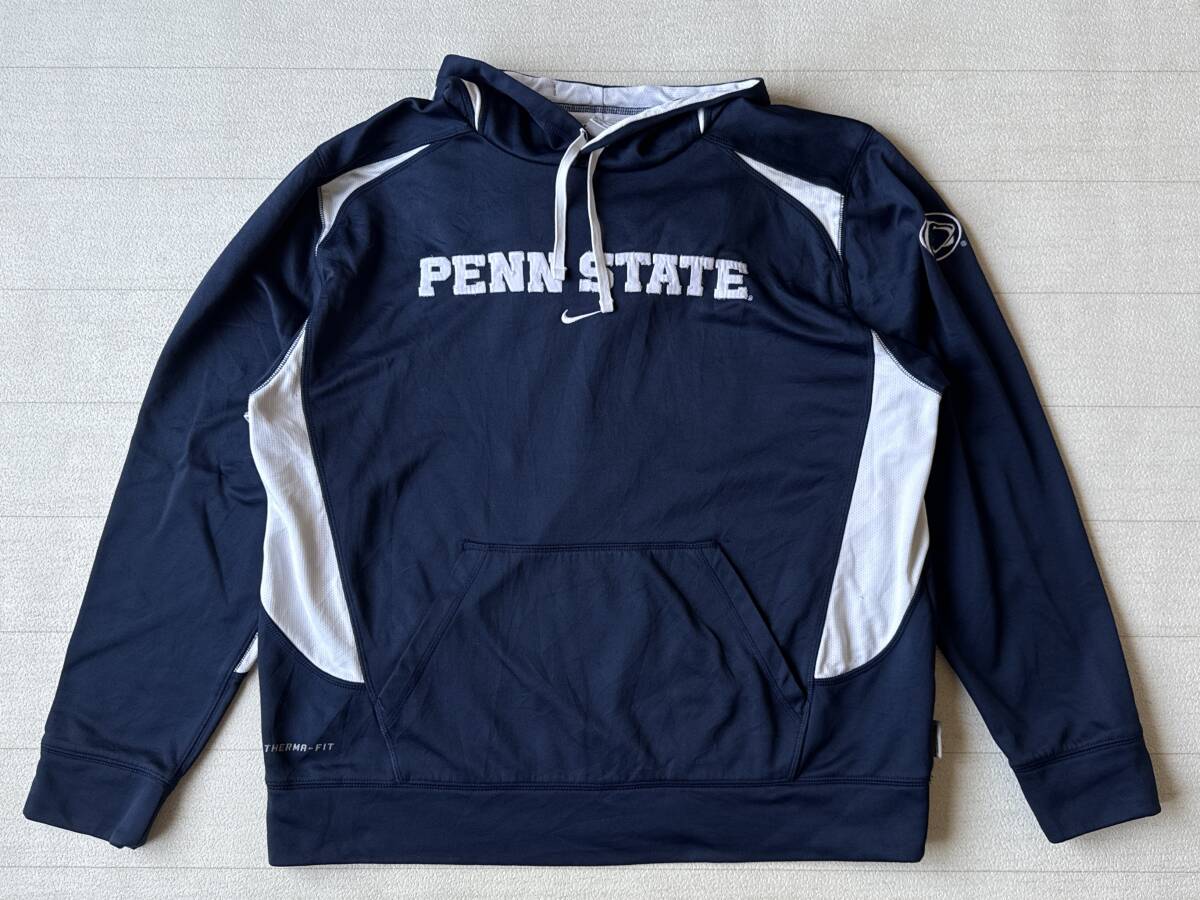 ☆送料無料☆ NIKE ナイキ USA直輸入 古着 プルオーバー 裏起毛 THERMA-FIT ペンシルベニア州立大学 カレッジ パーカー メンズ L ネイビー