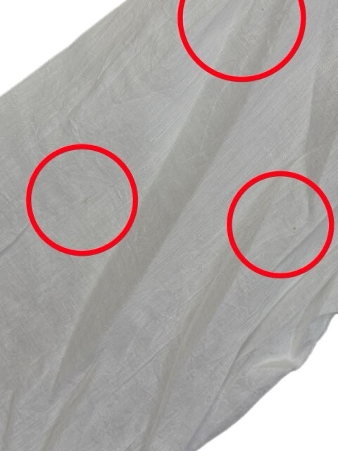 【状態】保管に伴い芳香剤のような香りがございます。 首周り・袖などに変色がございます。 写真のようなシミが点在しております。