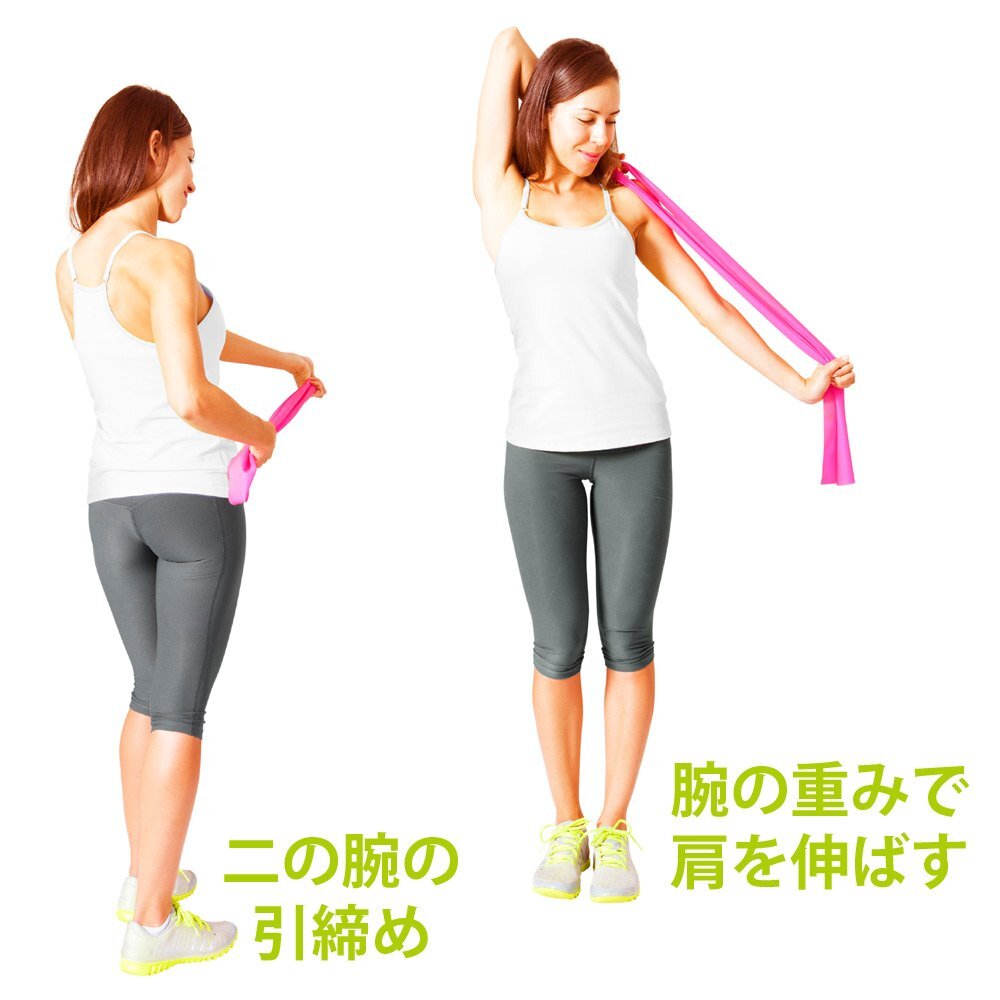 タオルストレッチでは物足りない方に、負荷のあるチューブでストレッチ。