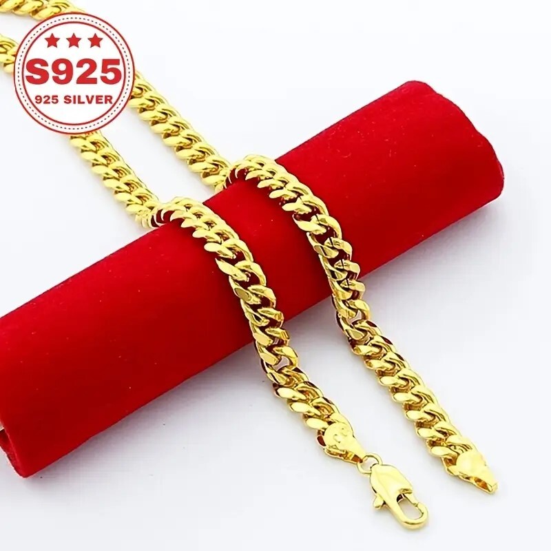 ゴールドプレート キューバンネックレス、クラシックファッションネックレス、925スターリングシルバー製