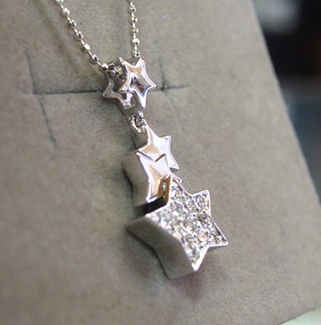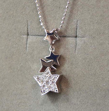 【K18WG】製の星に、上質で輝きの良い【天然ダイヤモンド:0.20c】が埋め込まれて、輝いています。(正規品・オリジナルペンダント)