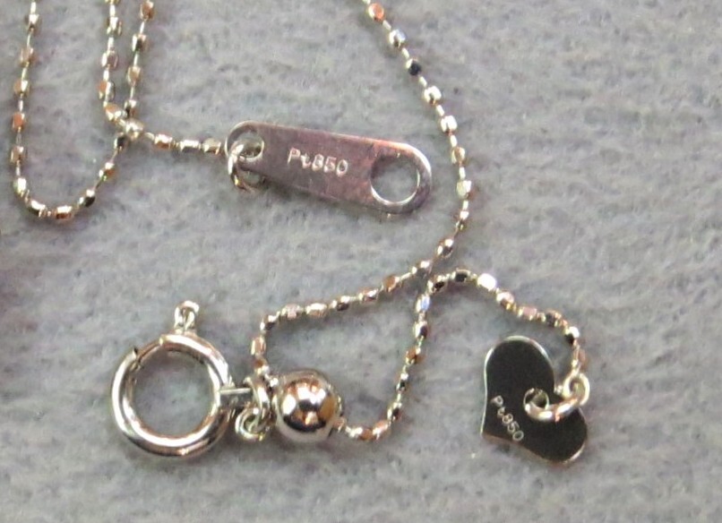 ●注意●(もともと付いているネックレスは、全長41cm・調節無しですので、お客様から短いので、もっと長いネックレスを付けてと要望が   多いので、あえて、(Pt850製・カットボール:ネックレス・45cmフリーサイズ)の物に、変えています。