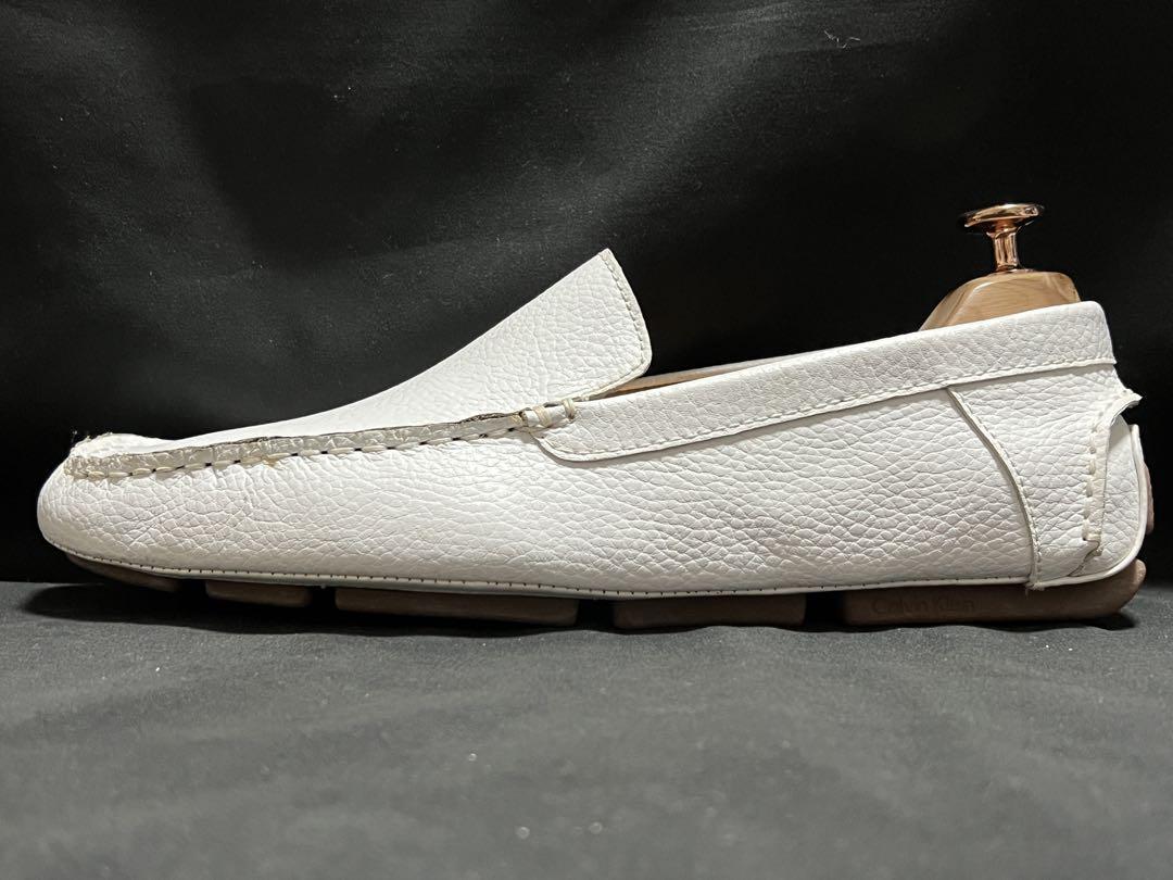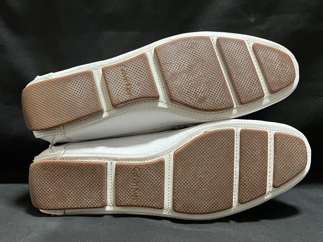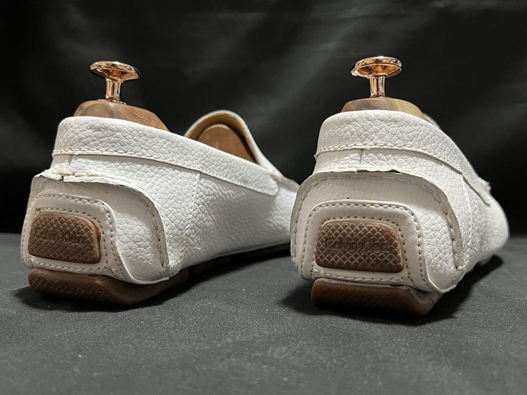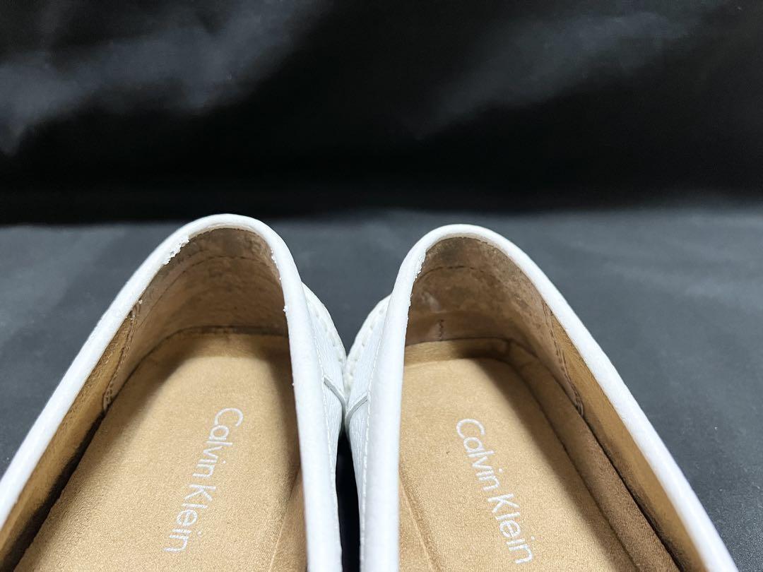 即決★美品 Calvin Klein★8M=約26cm レザースリッポン カルバンクライン 白 ホワイト シューズ ローファー 本革 革靴
