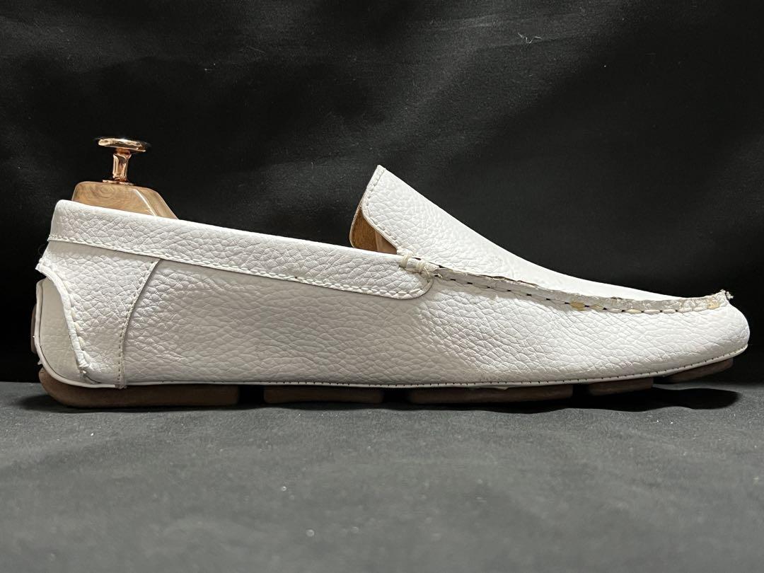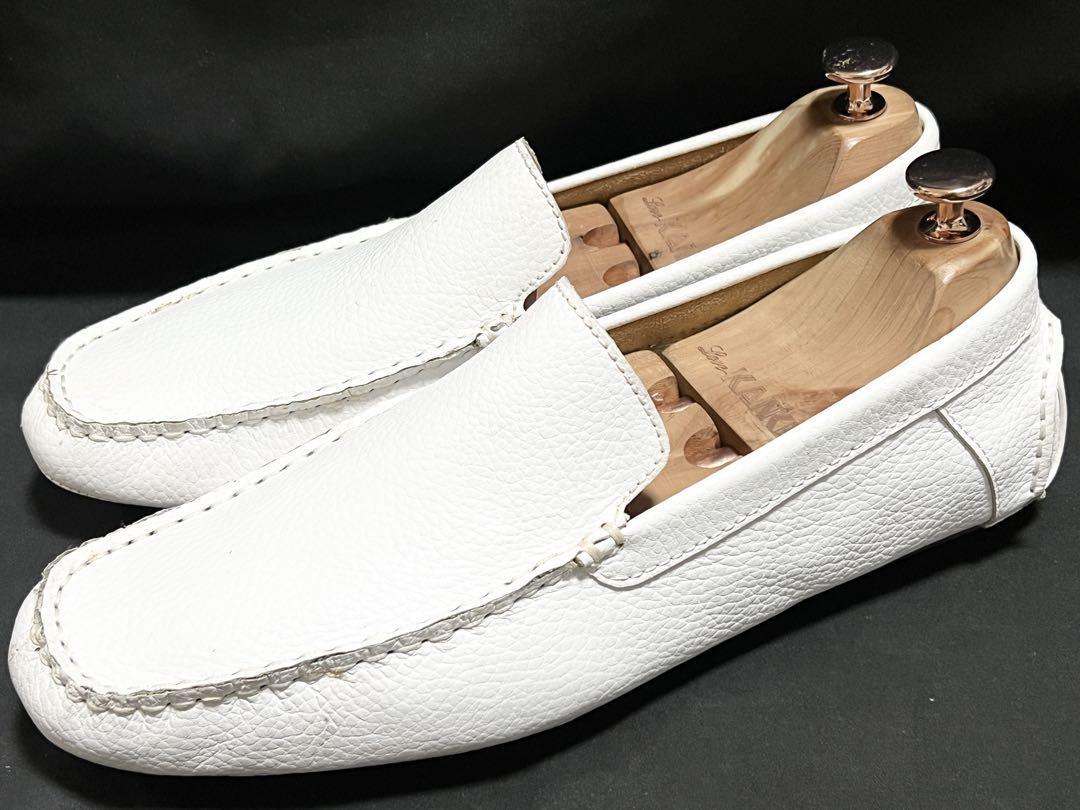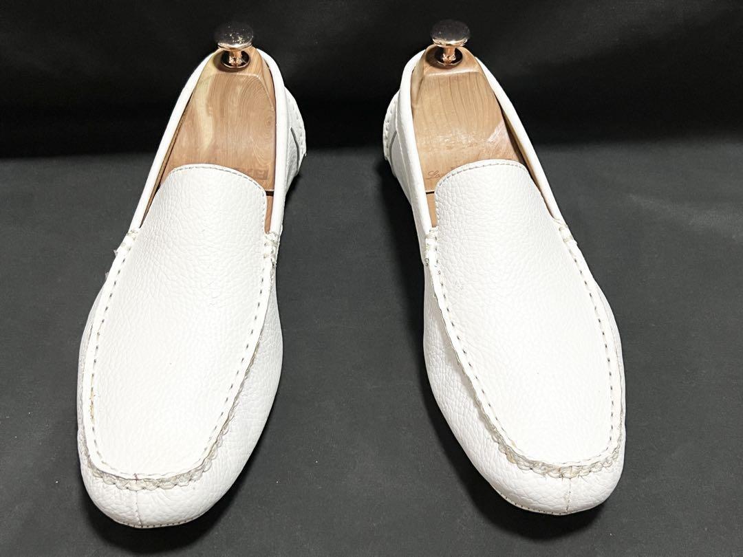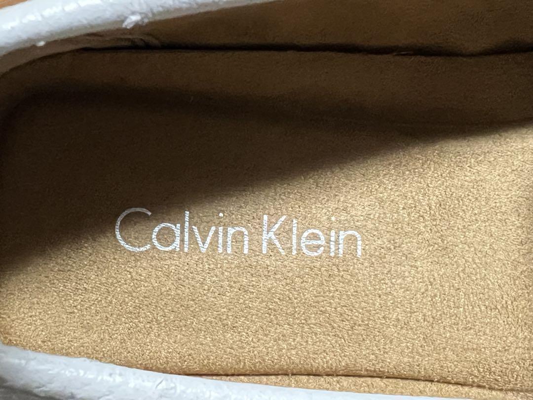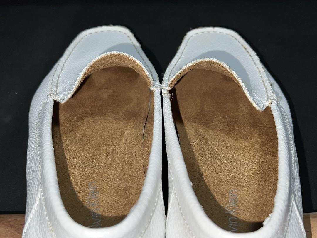 即決★美品 Calvin Klein★8M=約26cm レザースリッポン カルバンクライン 白 ホワイト シューズ ローファー 本革 革靴