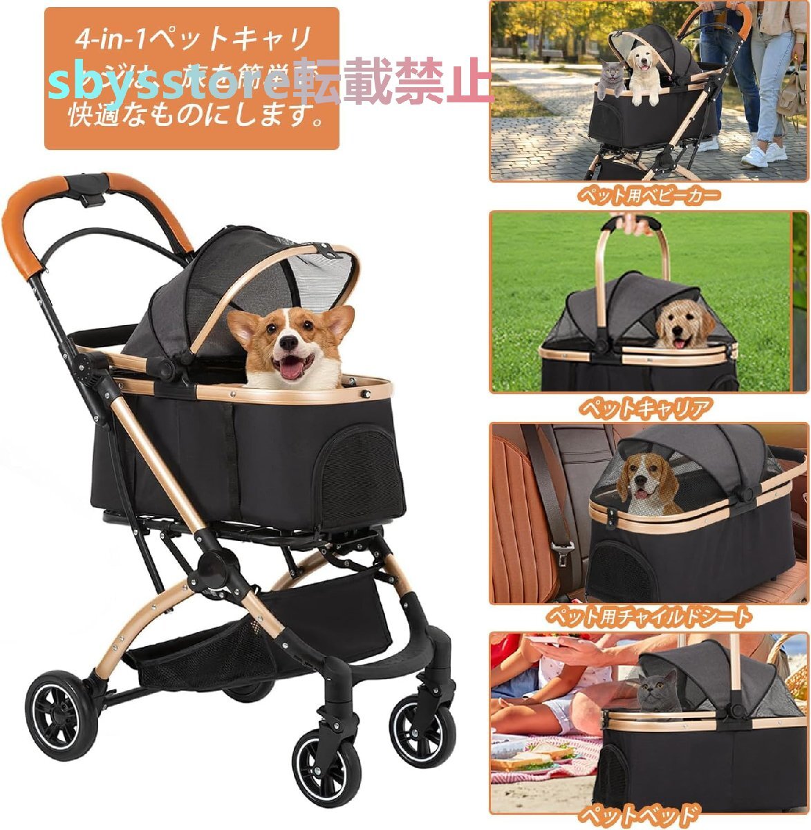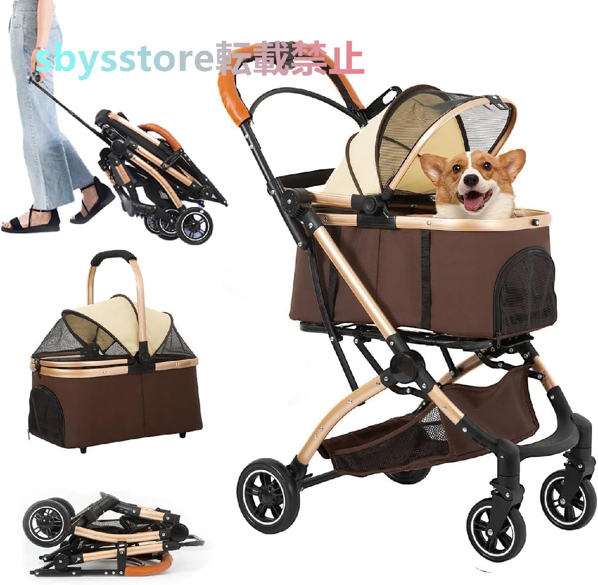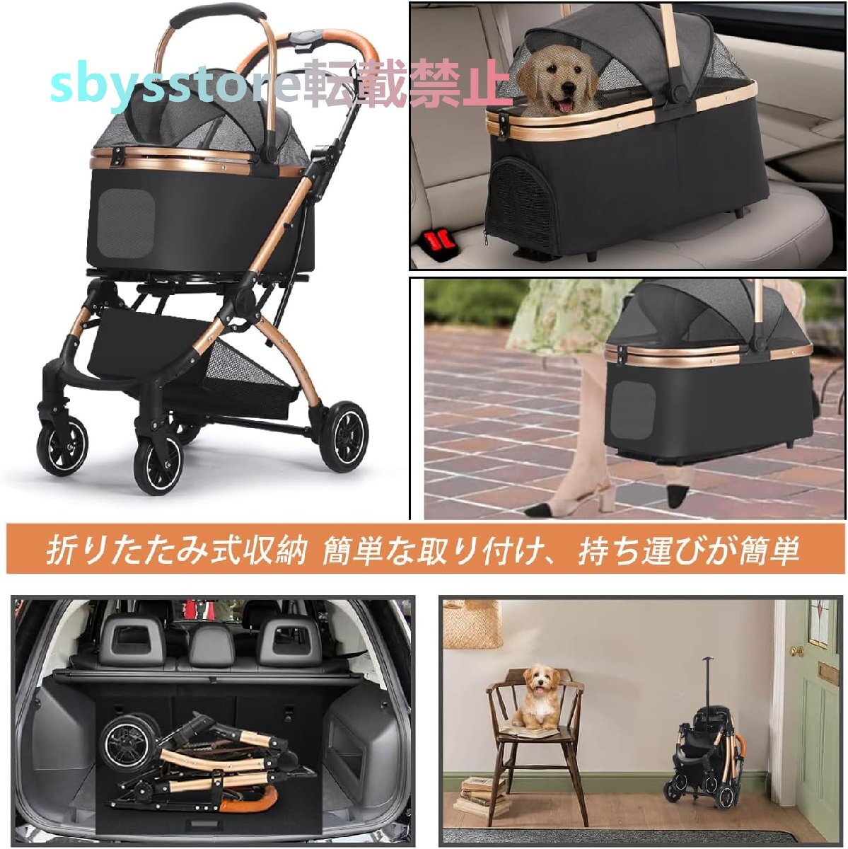 ペットカート 分離型 キャスター付き 前輪360°回転 犬用ベビーカー組み立て簡単 軽量 通気 折りたたみ式 取り外し可能 犬用カート収納簡単