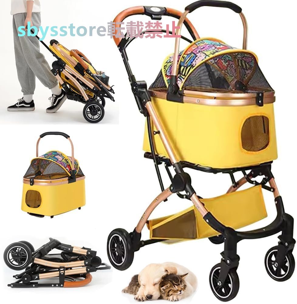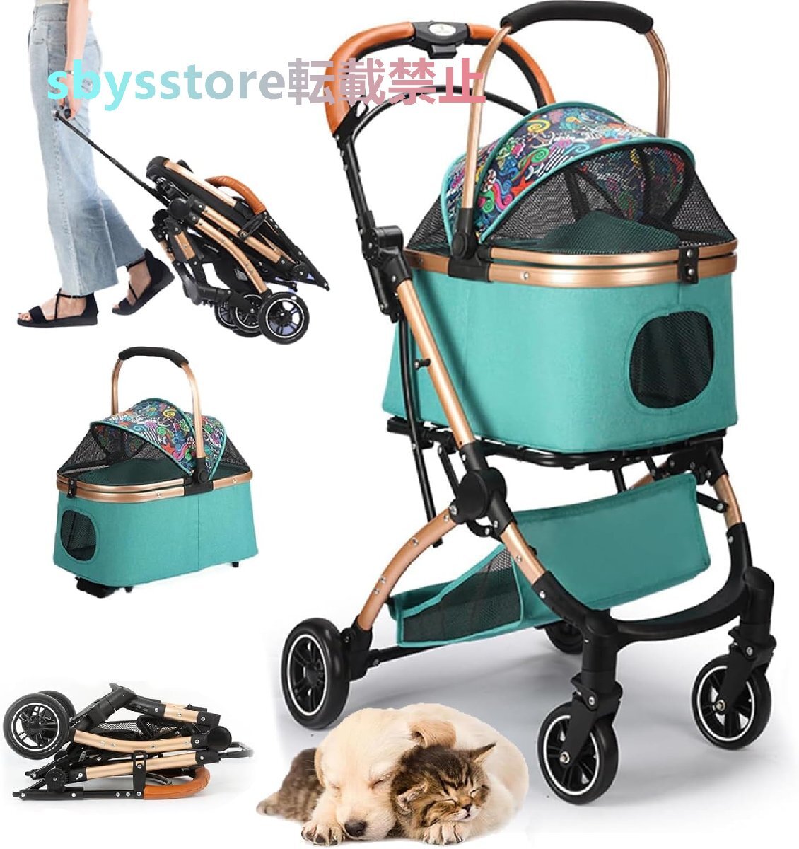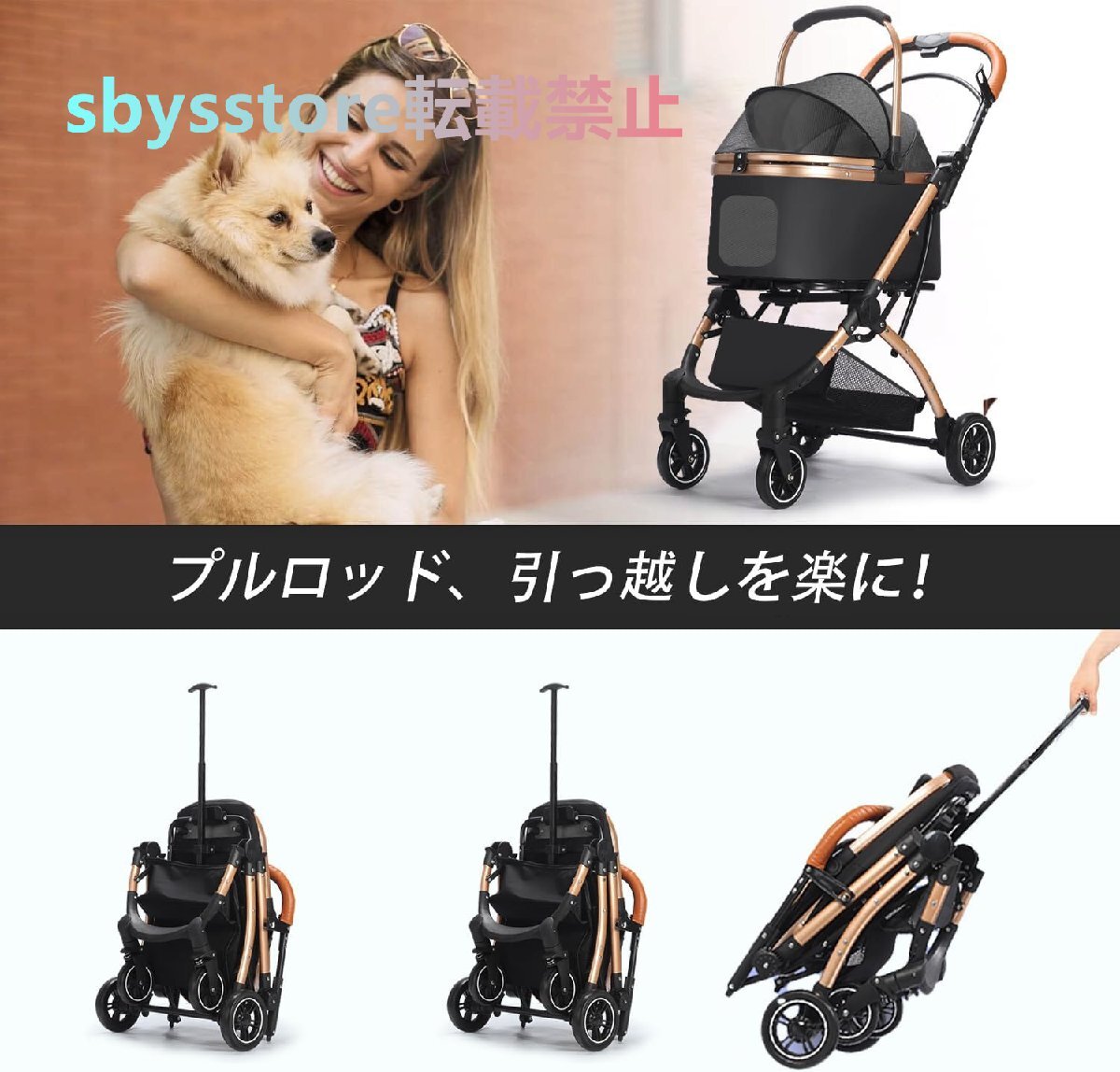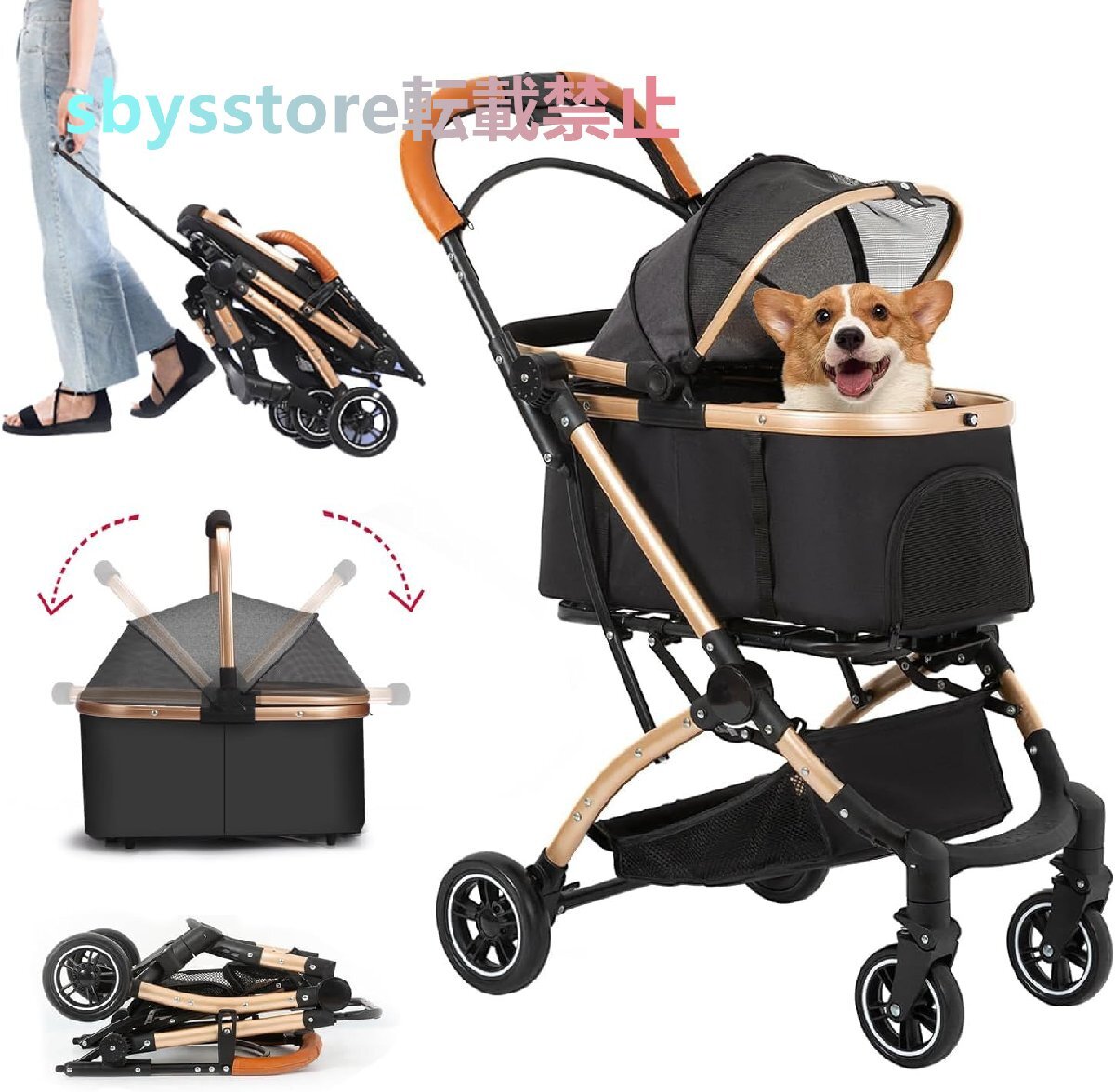 ペットカート 分離型 キャスター付き 前輪360°回転 犬用ベビーカー組み立て簡単 軽量 通気 折りたたみ式 取り外し可能 犬用カート収納簡単