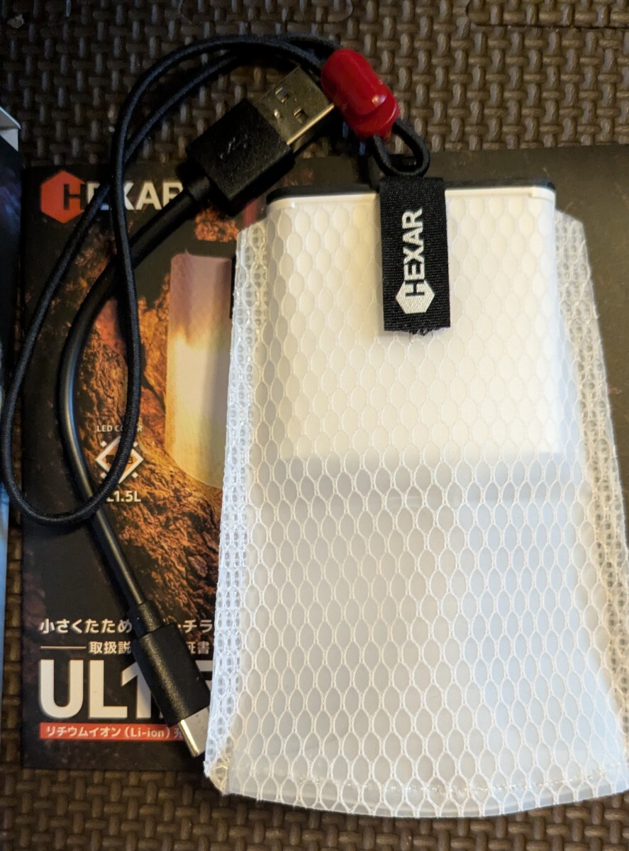 HEXAR (ヘキサー) UL1.5 充電式LEDランタン 【軽さ48g 小さくたためる灯り 】 IP66 無段階調光 ULテン泊 ソロキャン 防災 【電球色】
