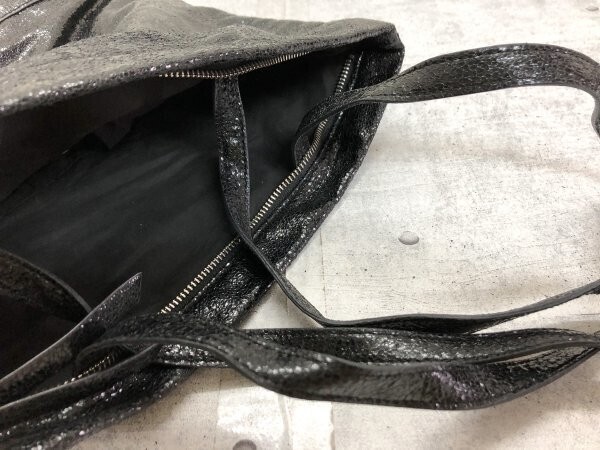(株)アダストリア レディース 合成皮革 ファスナー付き トートバッグ 裏地付き マチあり 黒