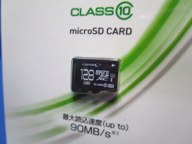 128GB microSDXCカード、CLASS10 UHS-1対応、読み込み速度最大90MB/s