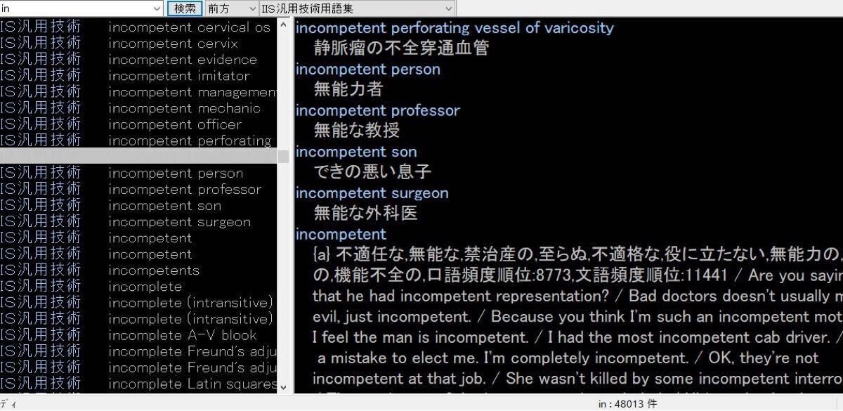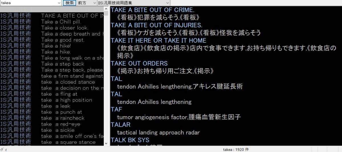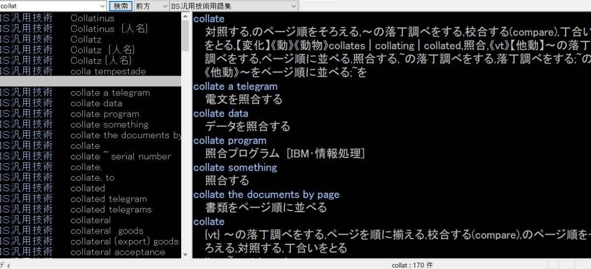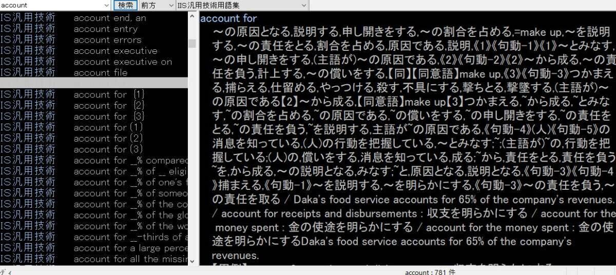 ●EPWING付(前方一致/後方一致/クロス検索可能、英和&和英検索可能、写真はEBWinの検索画面)。