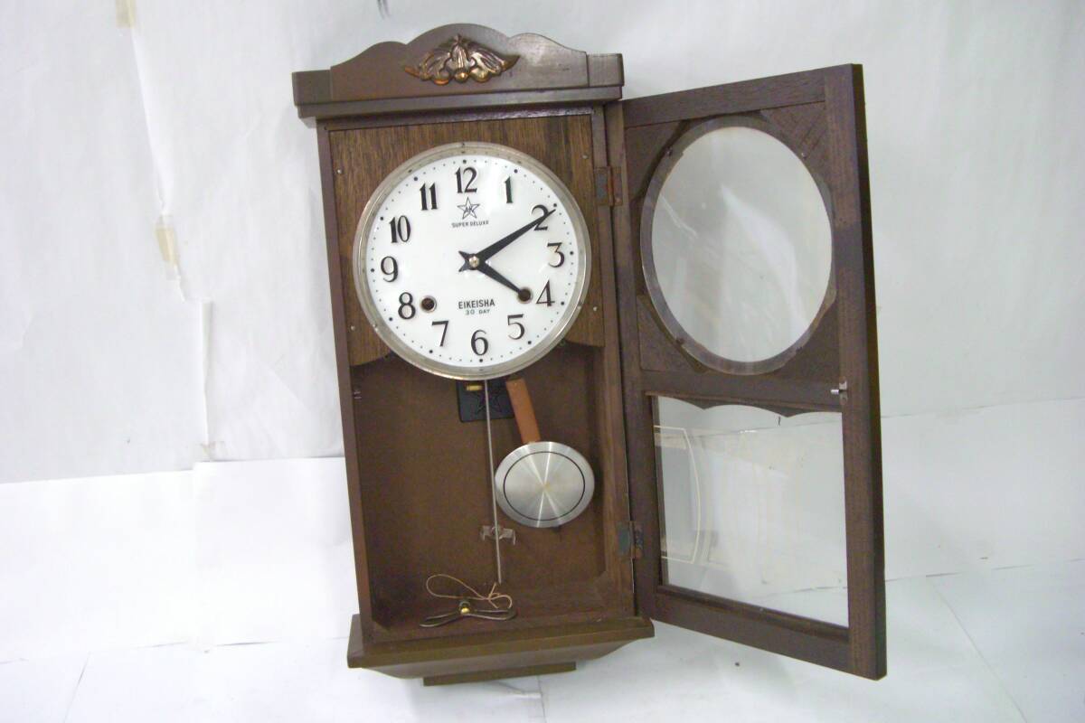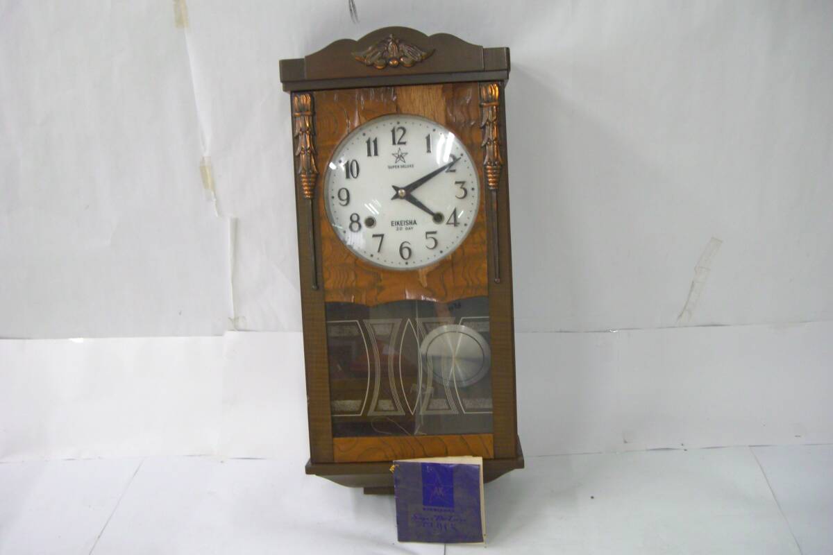 セ◎100/再1/30日捲スーパーデラックス掛時計/EIKEISHA/栄計舎/A.K/ゼンマイ式/振り子時計/壁掛け時計/昭和/レトロ/動作未確認★セ富-546★
