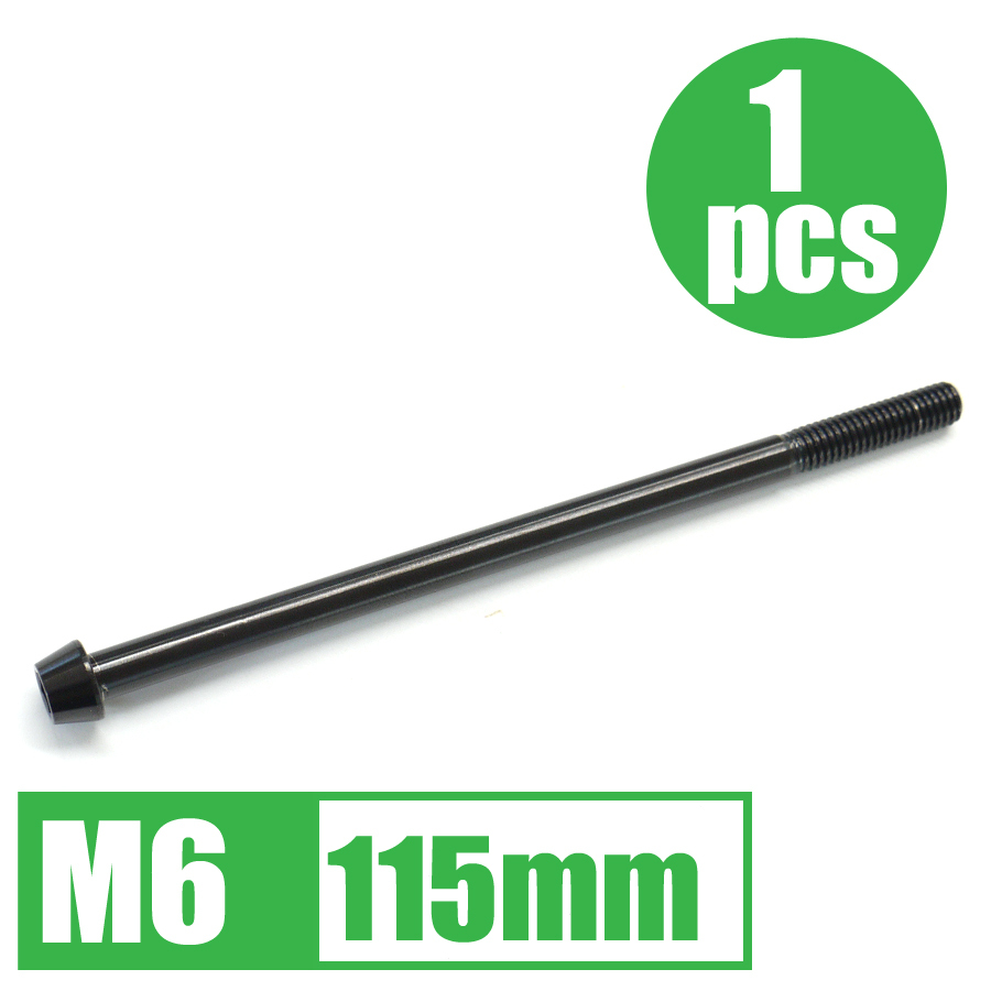 64チタン合金ボルト M6×115mm P1.0 1本 テーパーキャップ ゆうパケット対応 ブラック 黒 Ti-6Al-4V