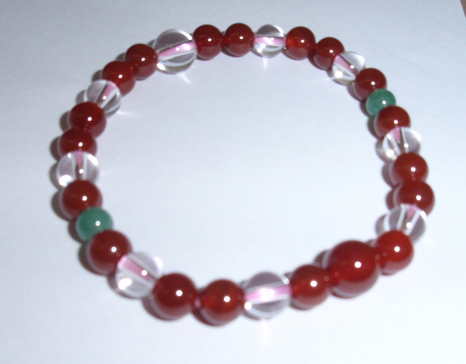 ◇25◇ ★値下★ 瑪瑙 水晶 翡翠 オリジナル配列 ブレスレット Mサイズ 国産品 704 新品未使用【信頼のヤフオク!実績25年】