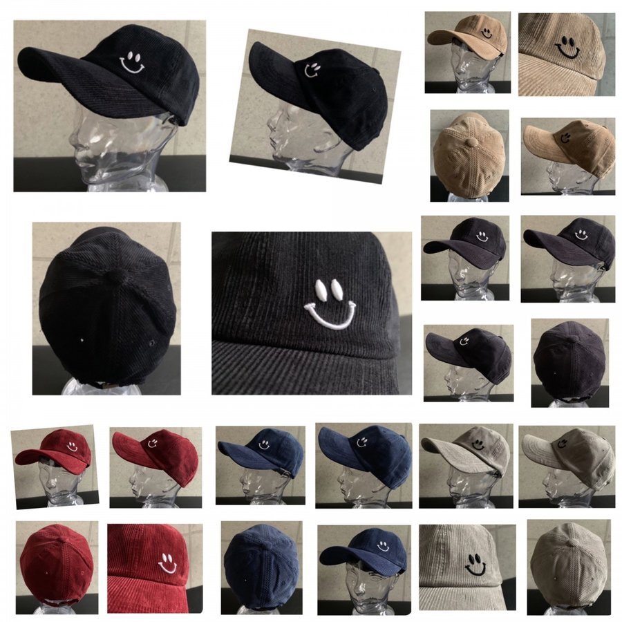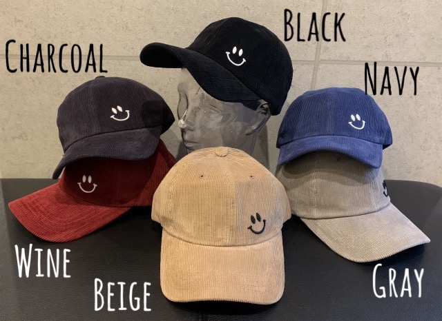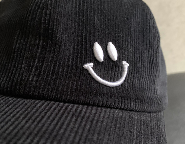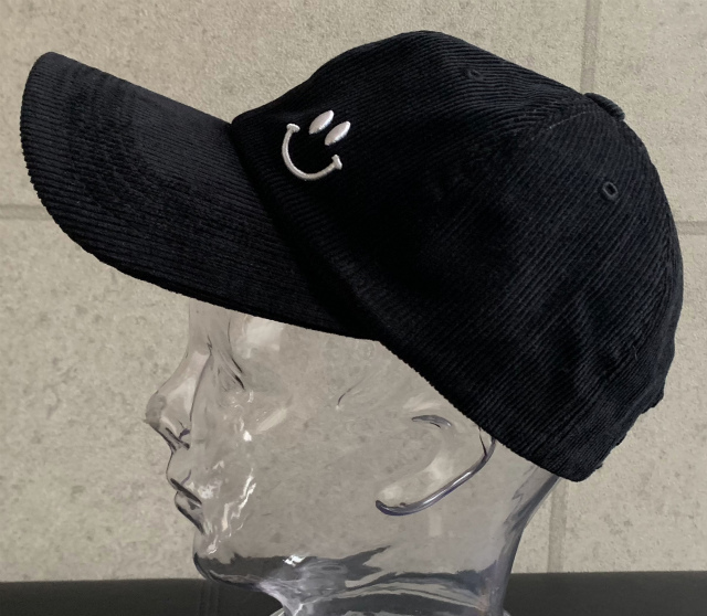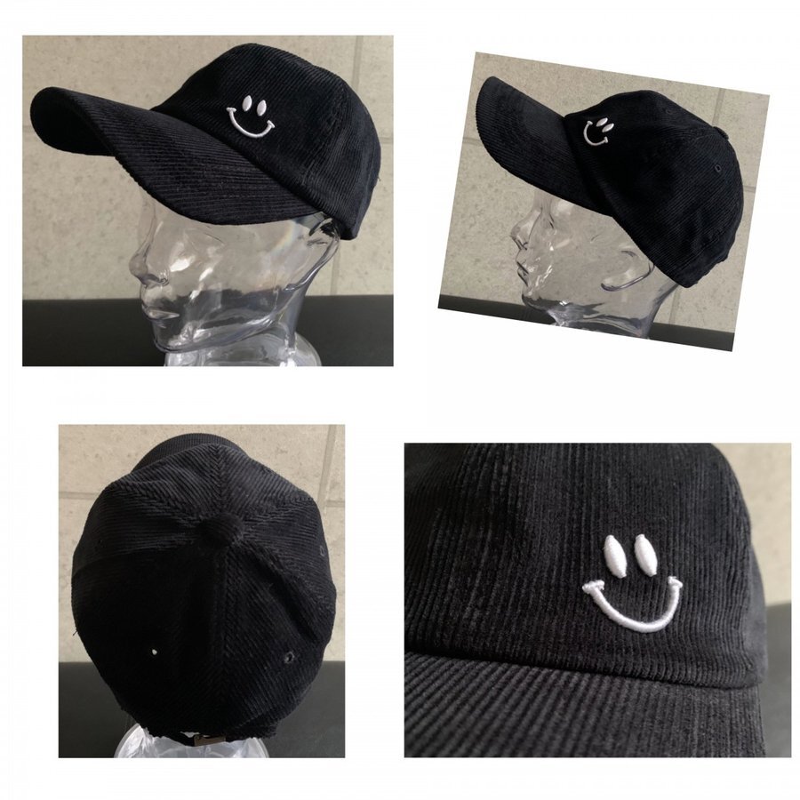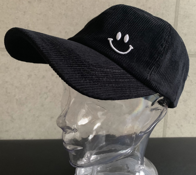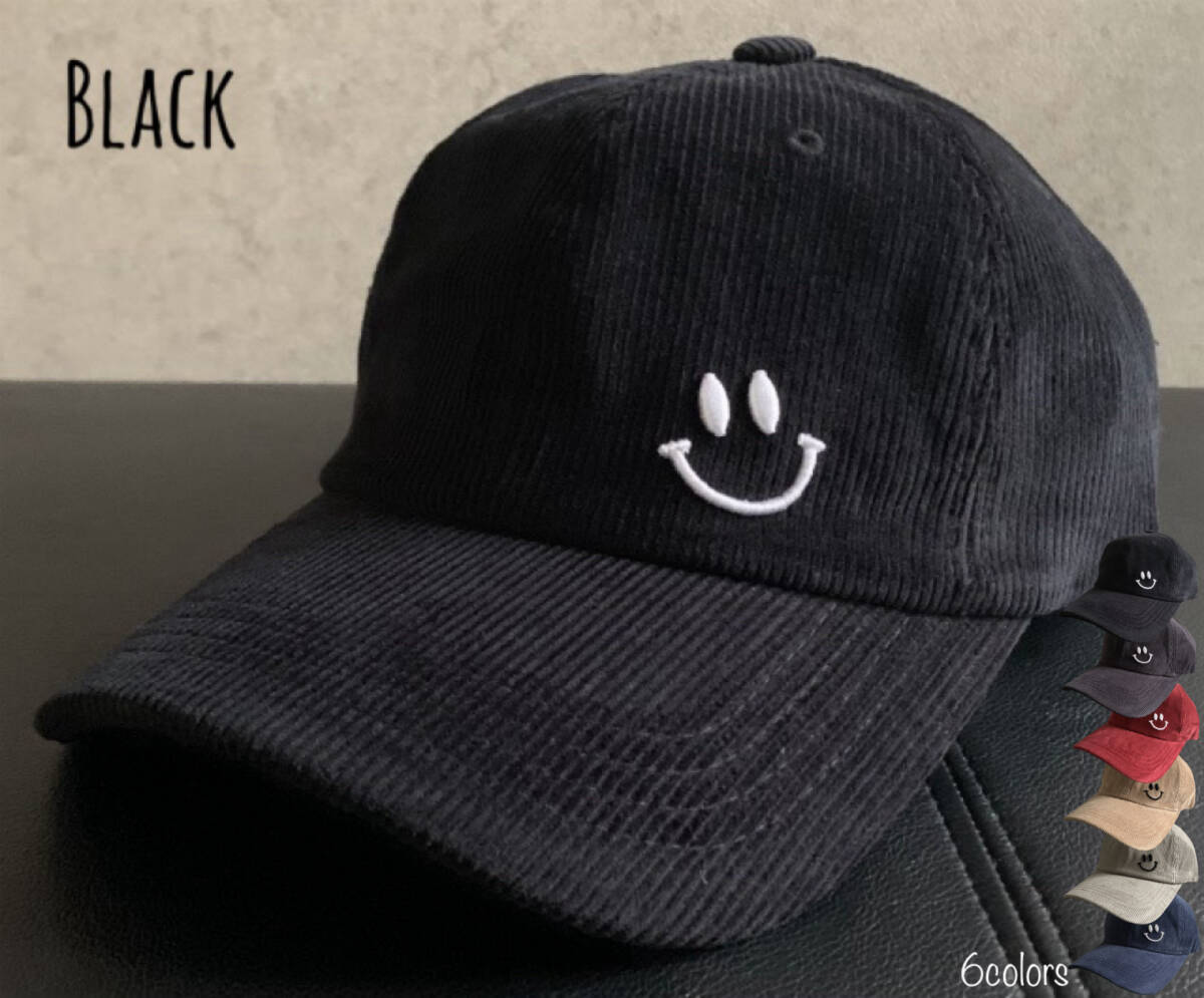 帽子 スマイル コーデュロイ キャップ カーブキャップ トレンド プチプラ メンズ レディース 男女兼用 ニコちゃん CAP コットン ブラック