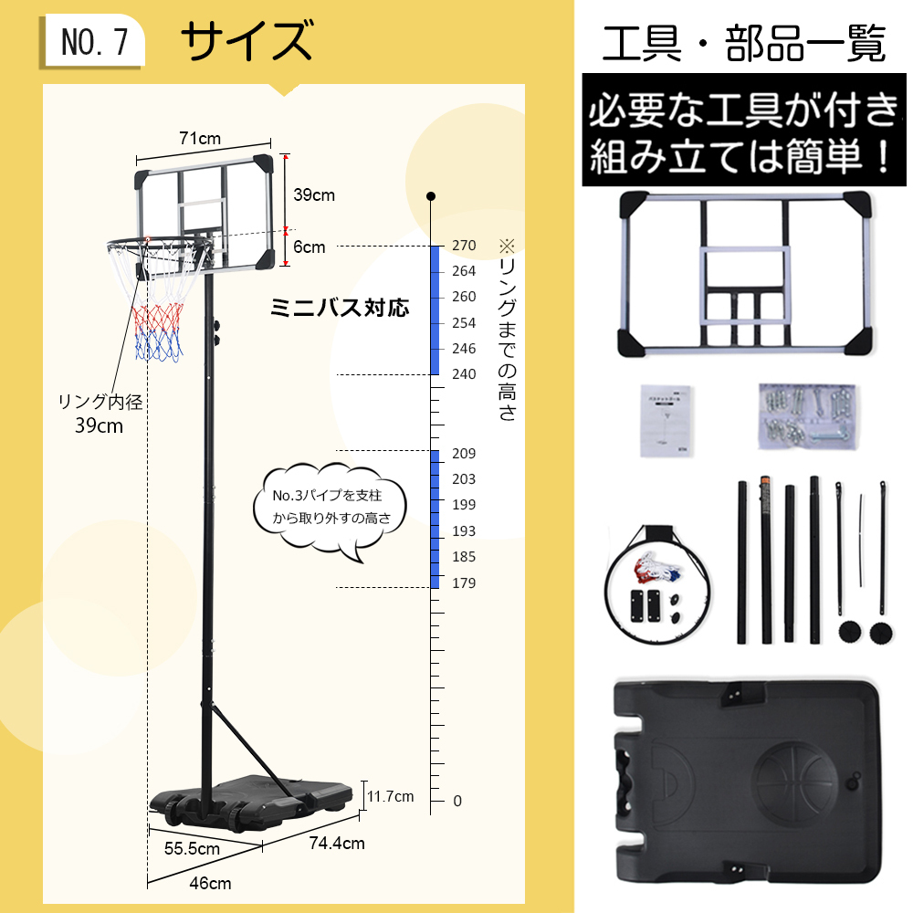 バスケットゴール 屋外 家庭用 179~270cm ミニバス対応 ゴール バスケ 子供 大人 キッズ ジュニア 小学生 こどもの日