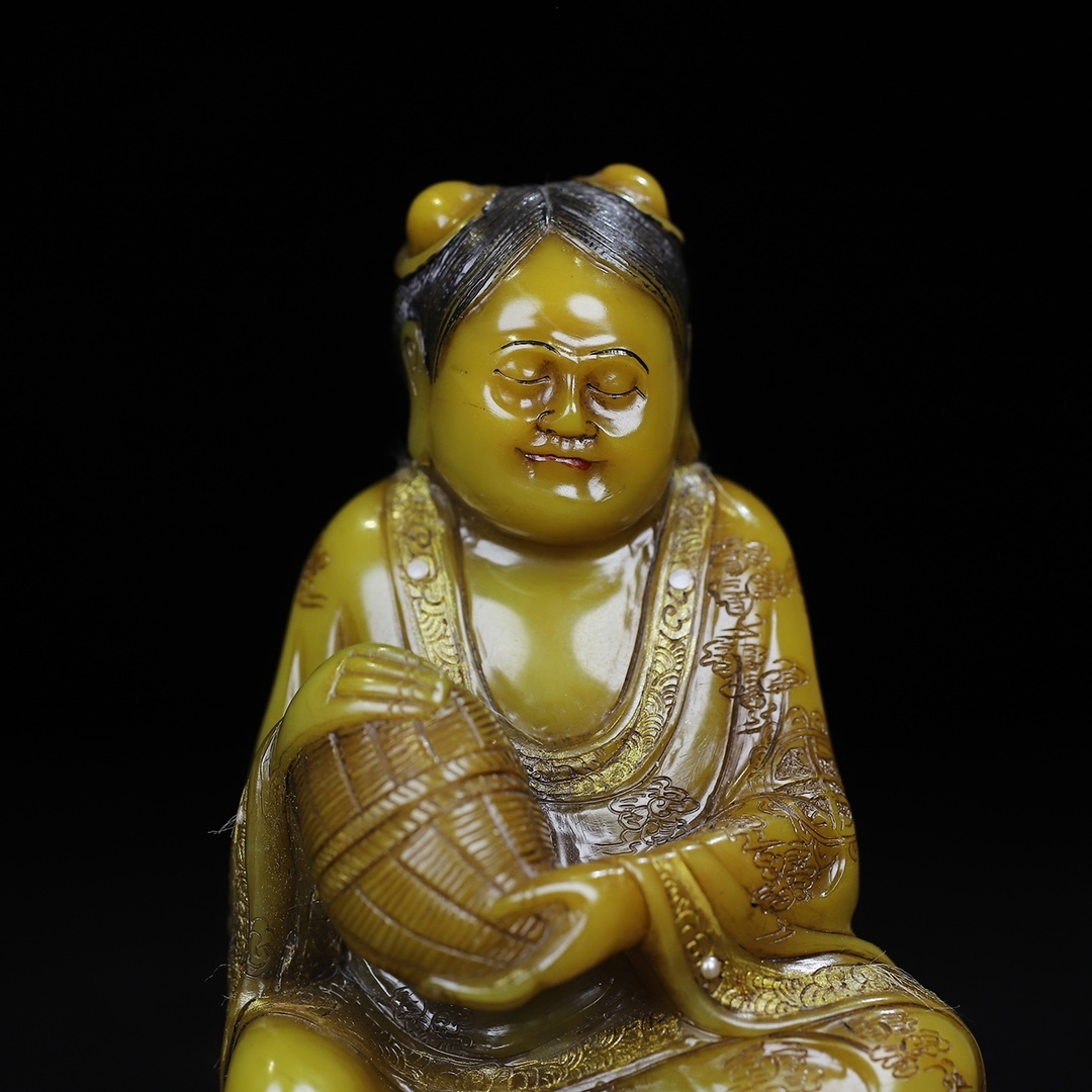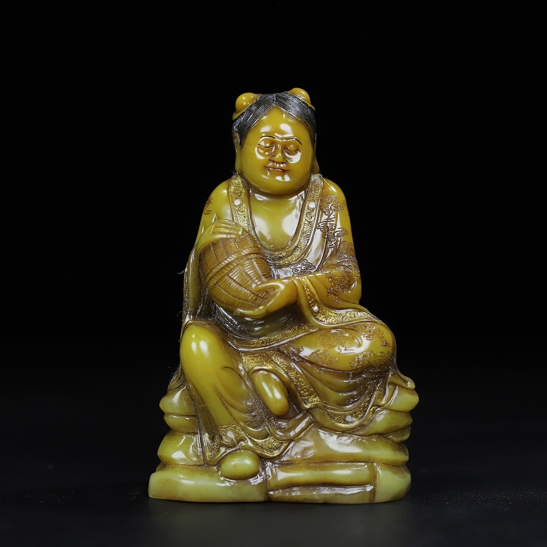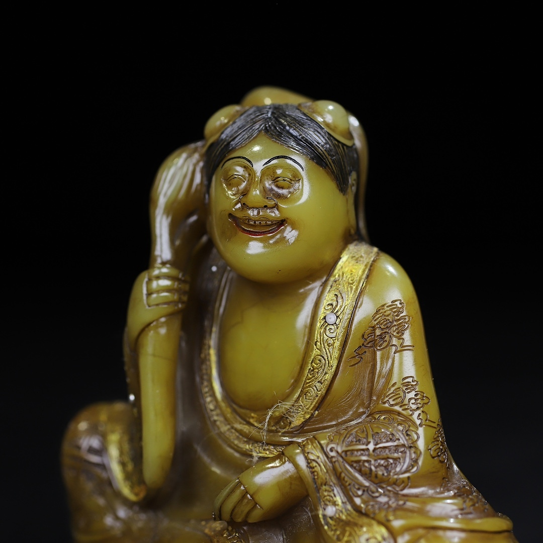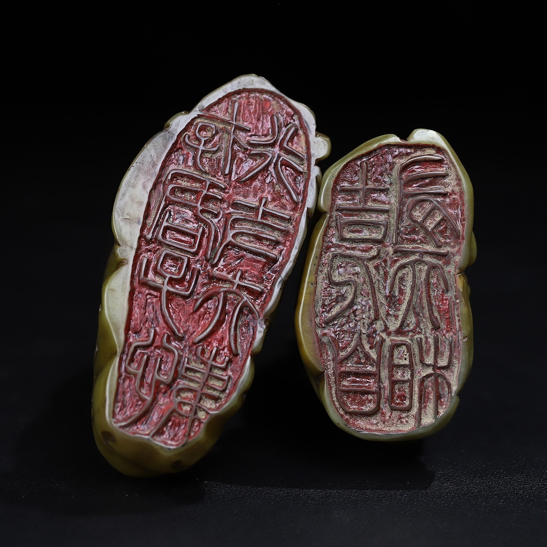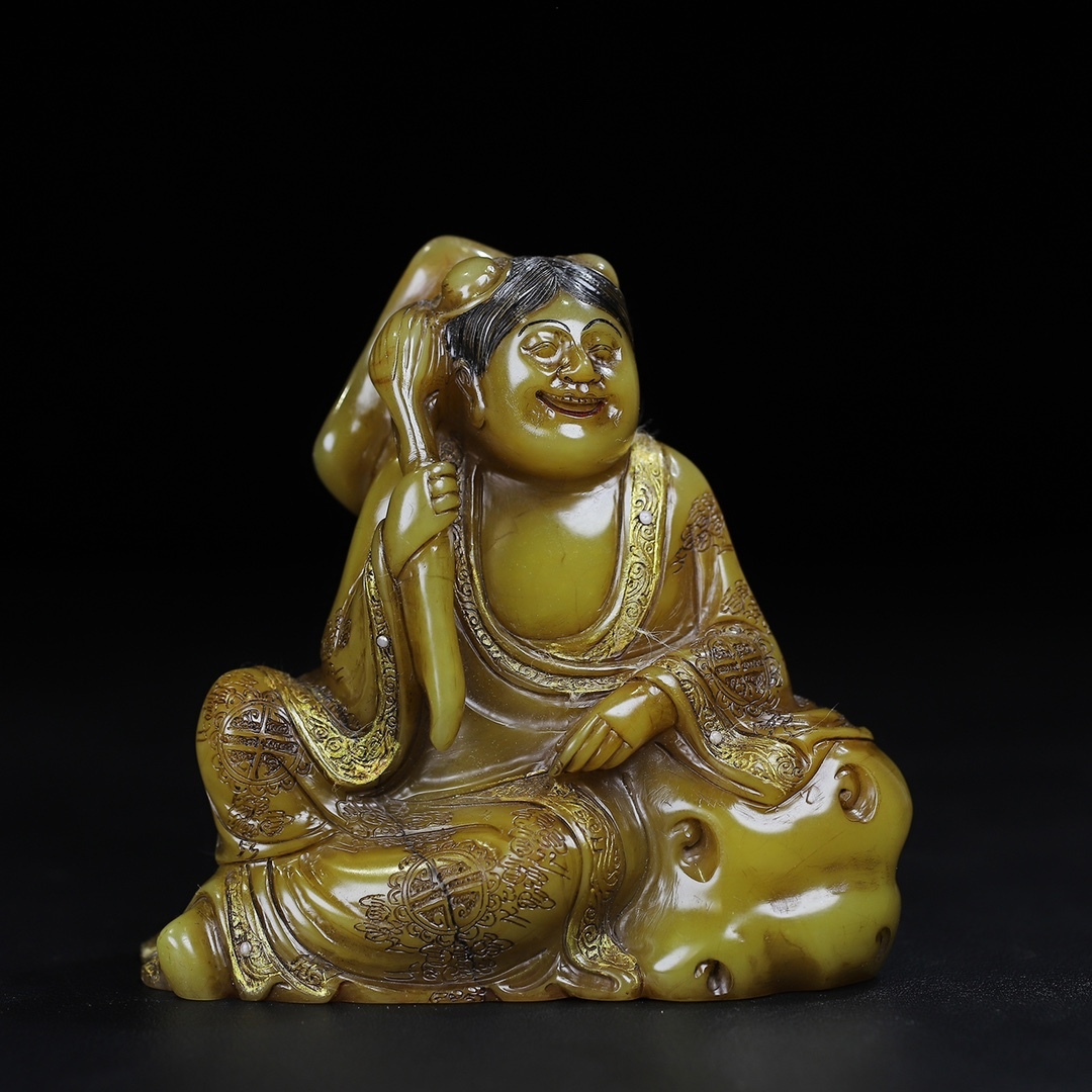 旧蔵 清 寿山石 『和合二仙』 民間愛神 印鑑 置物セット 天然石 手彫 篆刻 極細工 中国古玩 骨董品 古美味 208