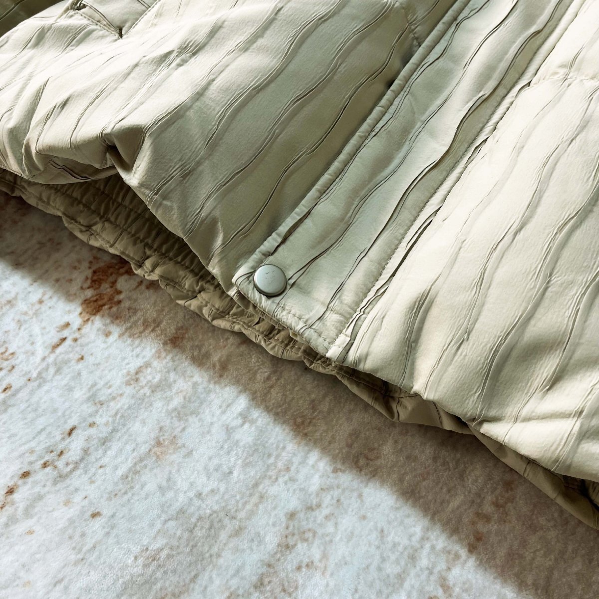 凹凸のあるストライプ柄が立体感を演出するダウンジャケットです。