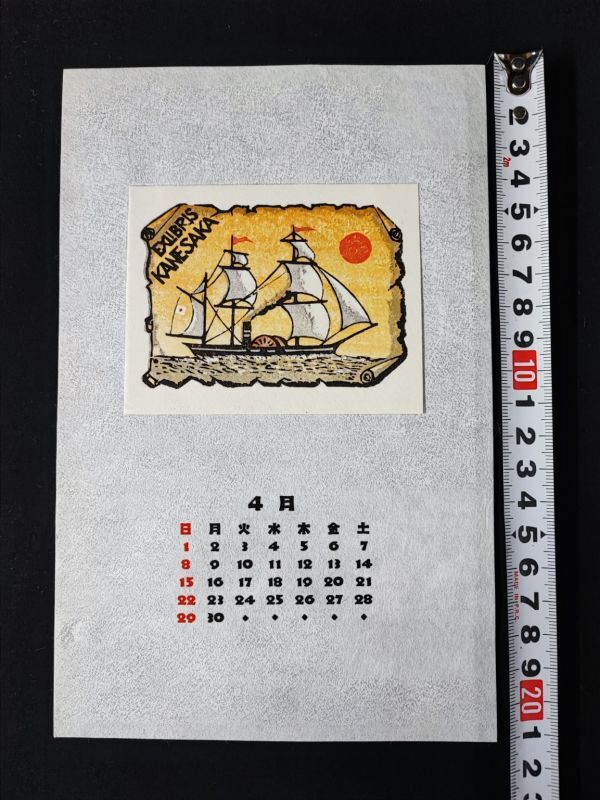 真作【木版画 蔵書票・作者「柳田基」/書票/書票暦/1990年4月/Z1-28】※説明欄必読