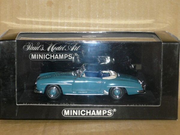 1/43 MINICHAMPS Mercedes-Benz 190SL 青です。箱が少し傷んでいますので、ご了承の上入札ください。商品の状況は写真でご判断の上、ノークレーム・ノーリターンでお願いします。保証はできませんが、定形外郵便での発送も可能です。