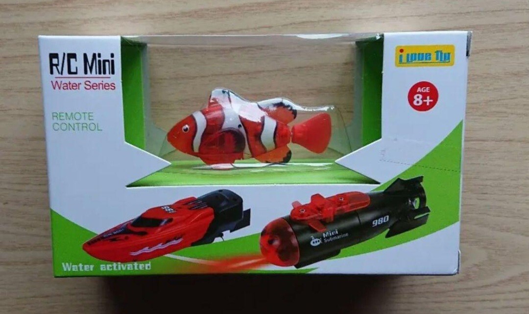 金魚をお水に浮かせてリモコンで操作し遊ぶラジコンです。