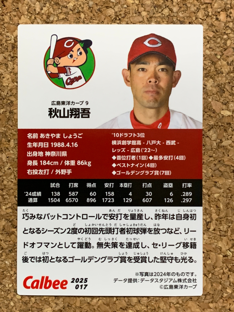 (2025プロ野球チップス 第1弾 レギュラーカード 017 広島東洋カープ 秋山 翔吾)