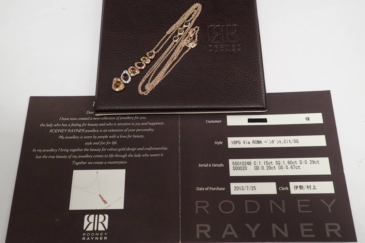 | 商品説明 | 27/美品 ロドニーレイナー RODNEY RAYNER K18PG ピンクゴールド Via ROMA シトリン ネックレス C1.15/SQ1.60/D0.29/CD0.20/OS/0.67 です。 |