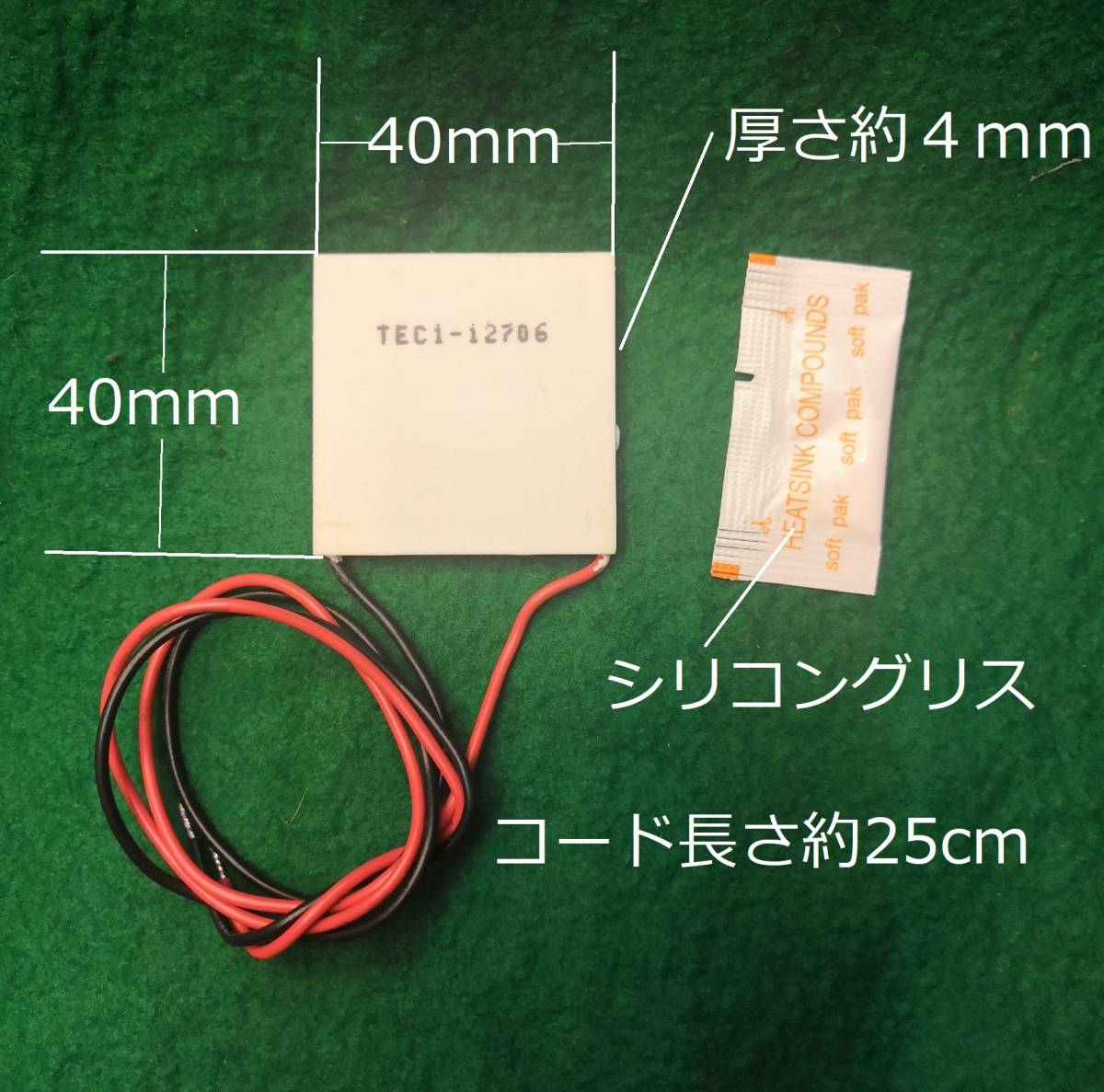 電気冷却モジュールペルチェ素子6Aタイプ40mm角TEC1-12706とシリコングリス送料全国一律ゆうメール180円