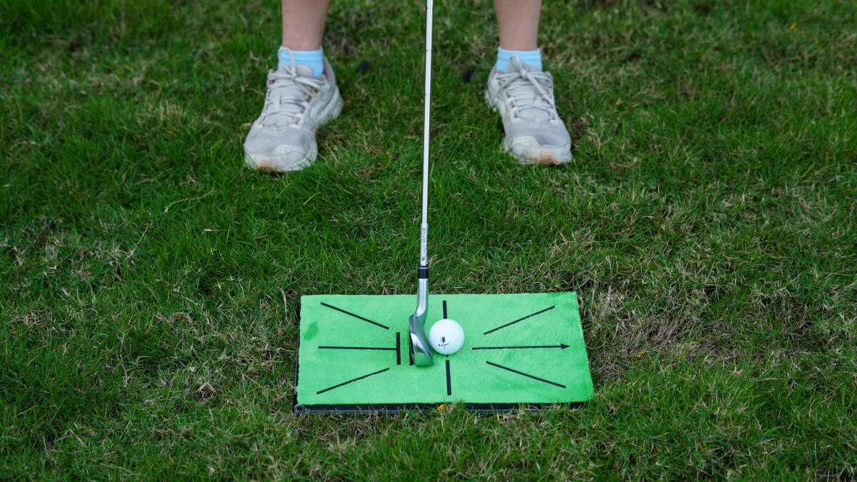 スイングパスマット、短芝のフェアウェイマット、長芝のラフマットを組み合わせ、実際のコースさながらのライを再現します。