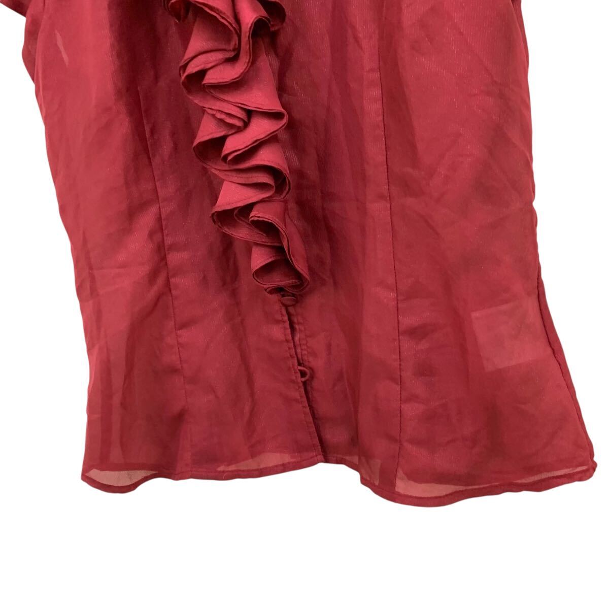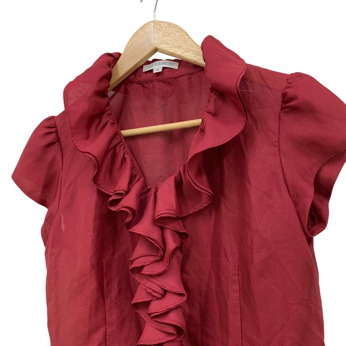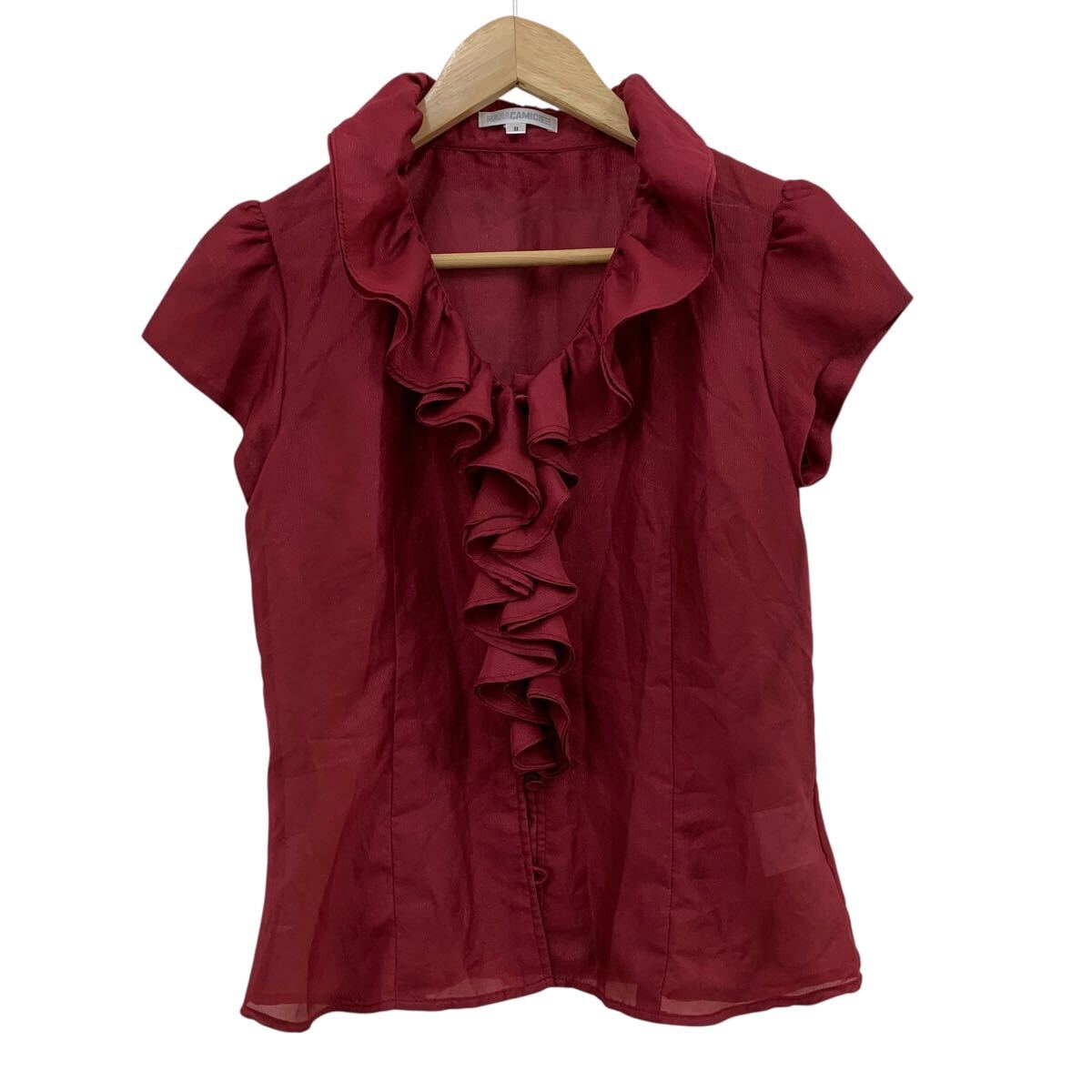 C429-9 NARACAMICIE ナラカミーチェ 透け感 シースルー フリル 半袖 シャツ ブラウス トップス レディース 2 レッド 赤