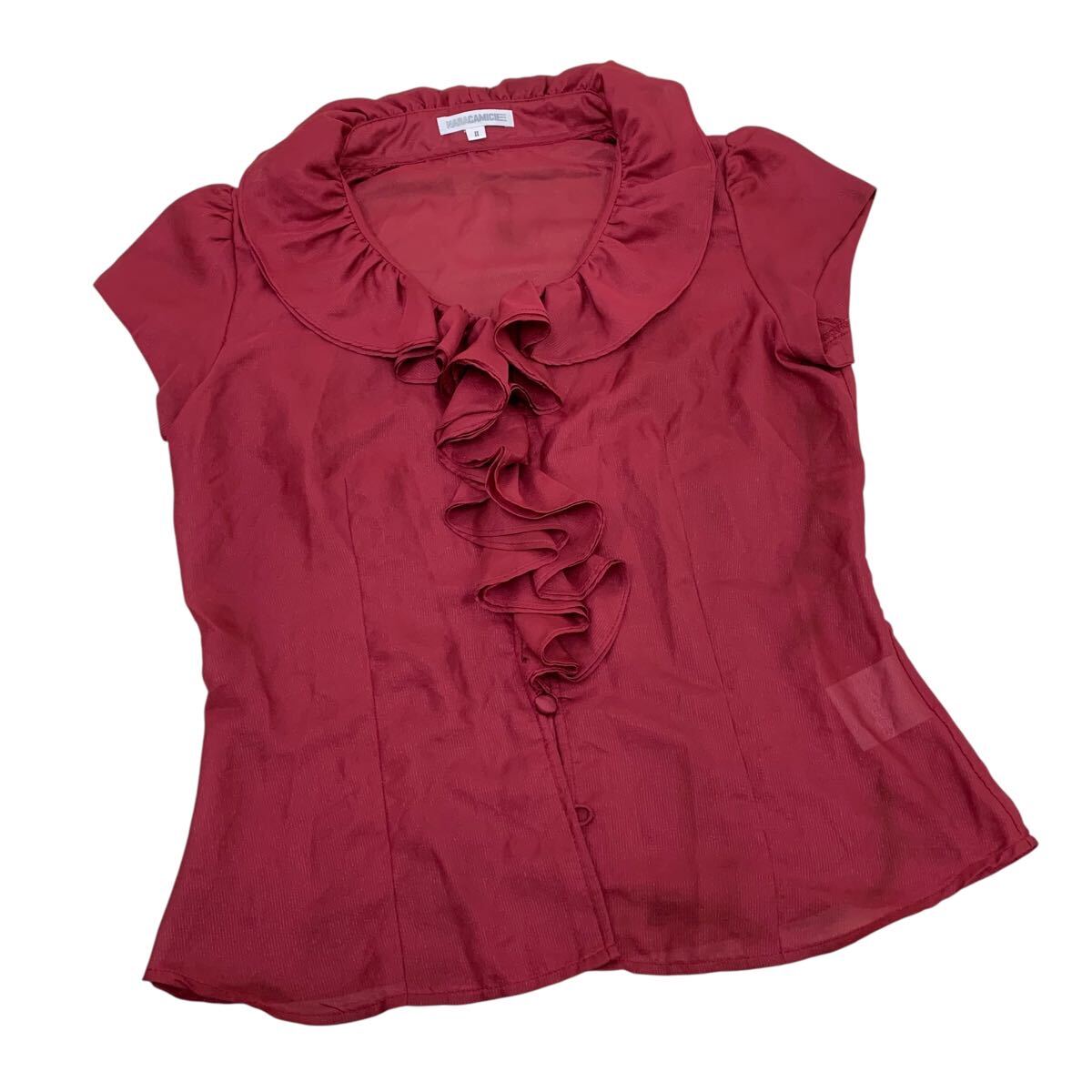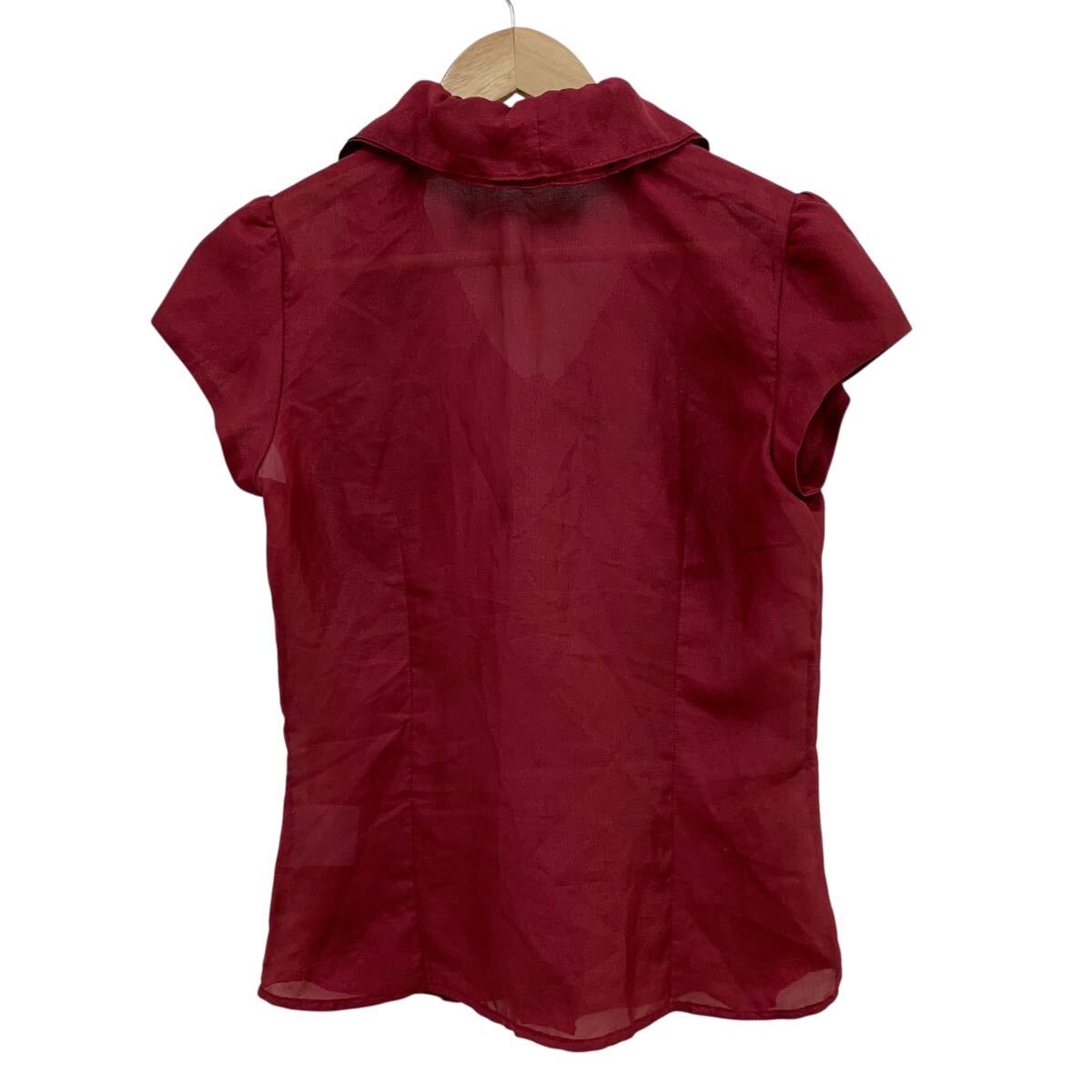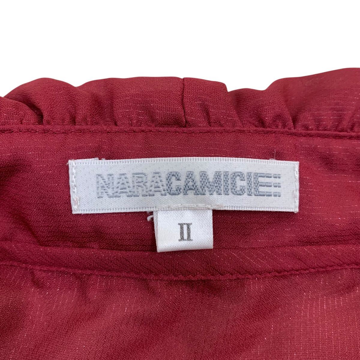 C429-9 NARACAMICIE ナラカミーチェ 透け感 シースルー フリル 半袖 シャツ ブラウス トップス レディース 2 レッド 赤
