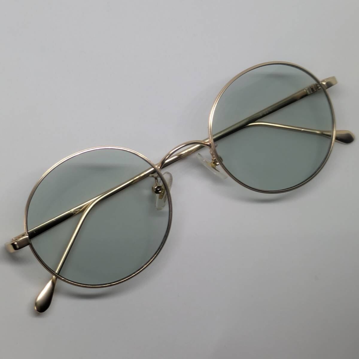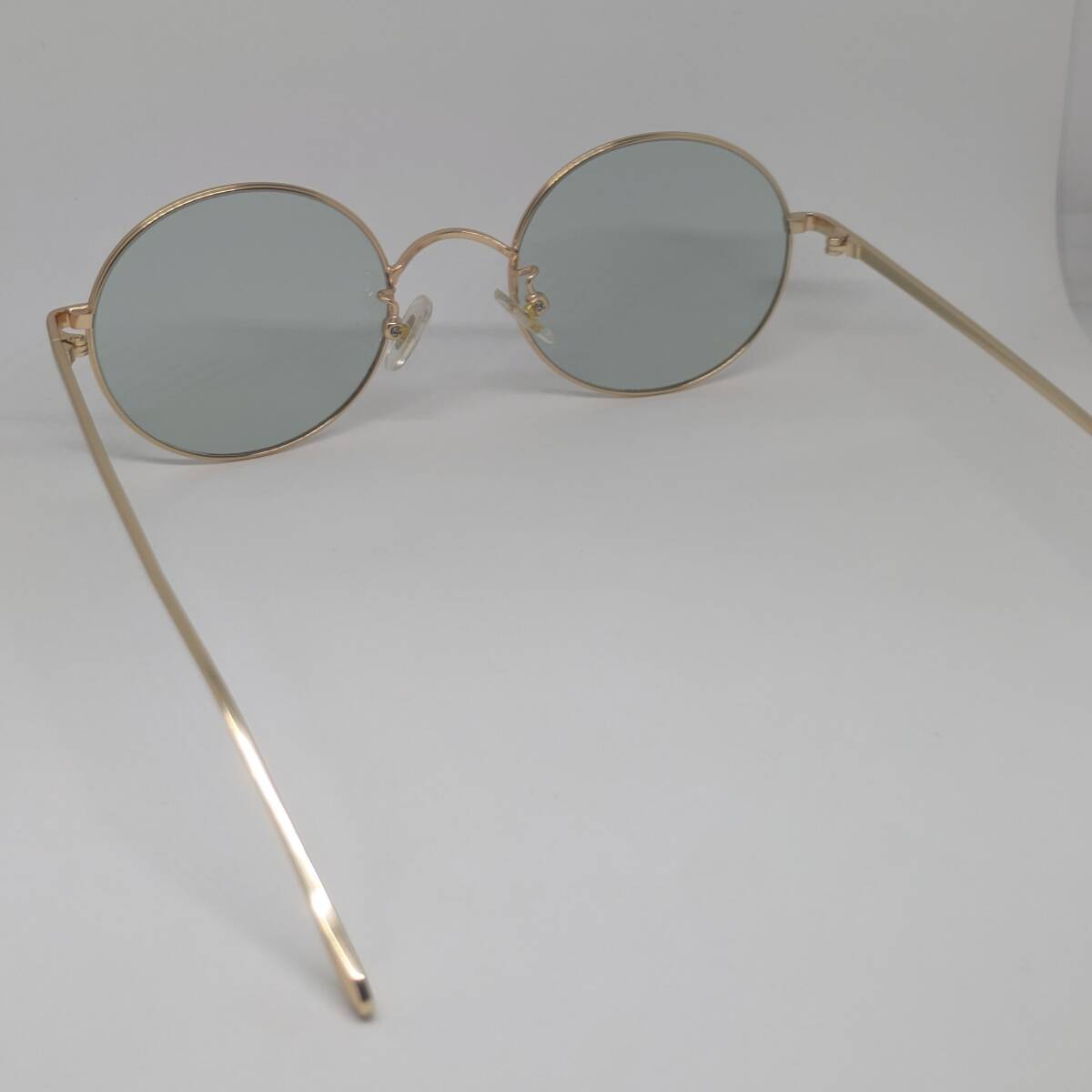 オーバルライクで顔に馴染むメタル UV ラウンド サングラス マットゴールド ミントグリーン 金縁 丸メガネ メンズ レディース