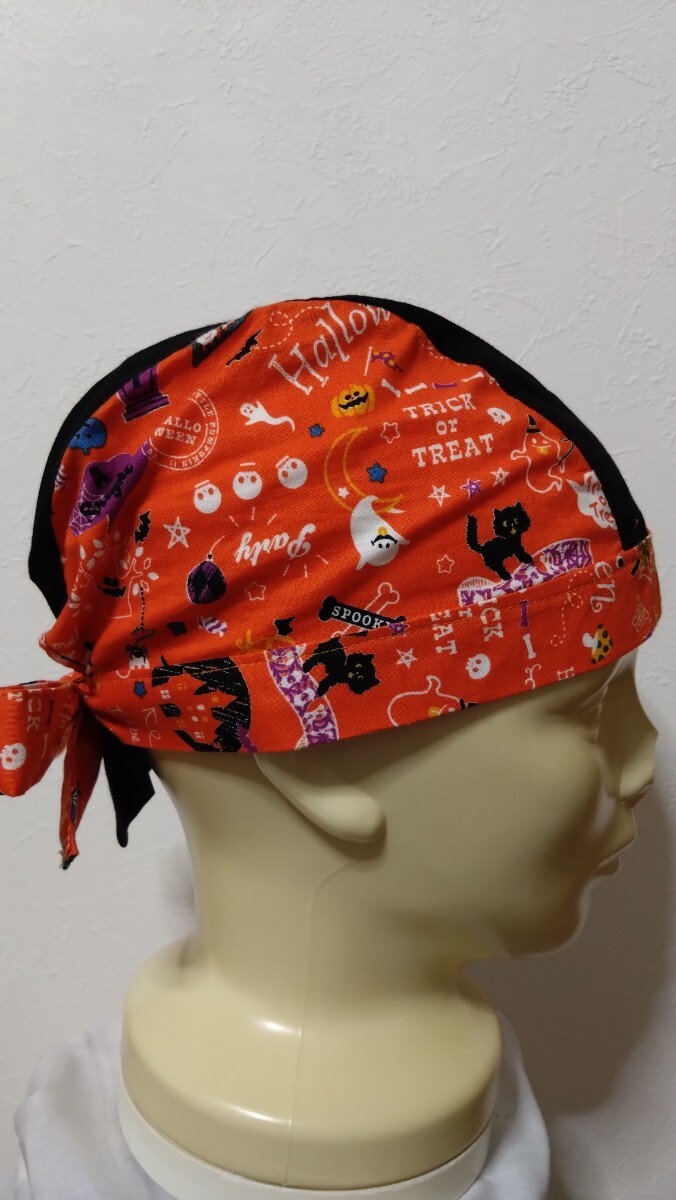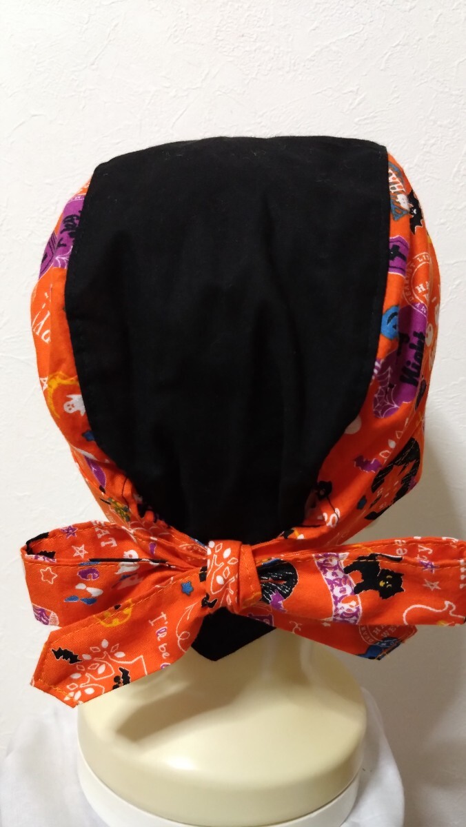 短★バンダナキャップ★ハンドメイド ハロウィン×無地 パンプキン オレンジ