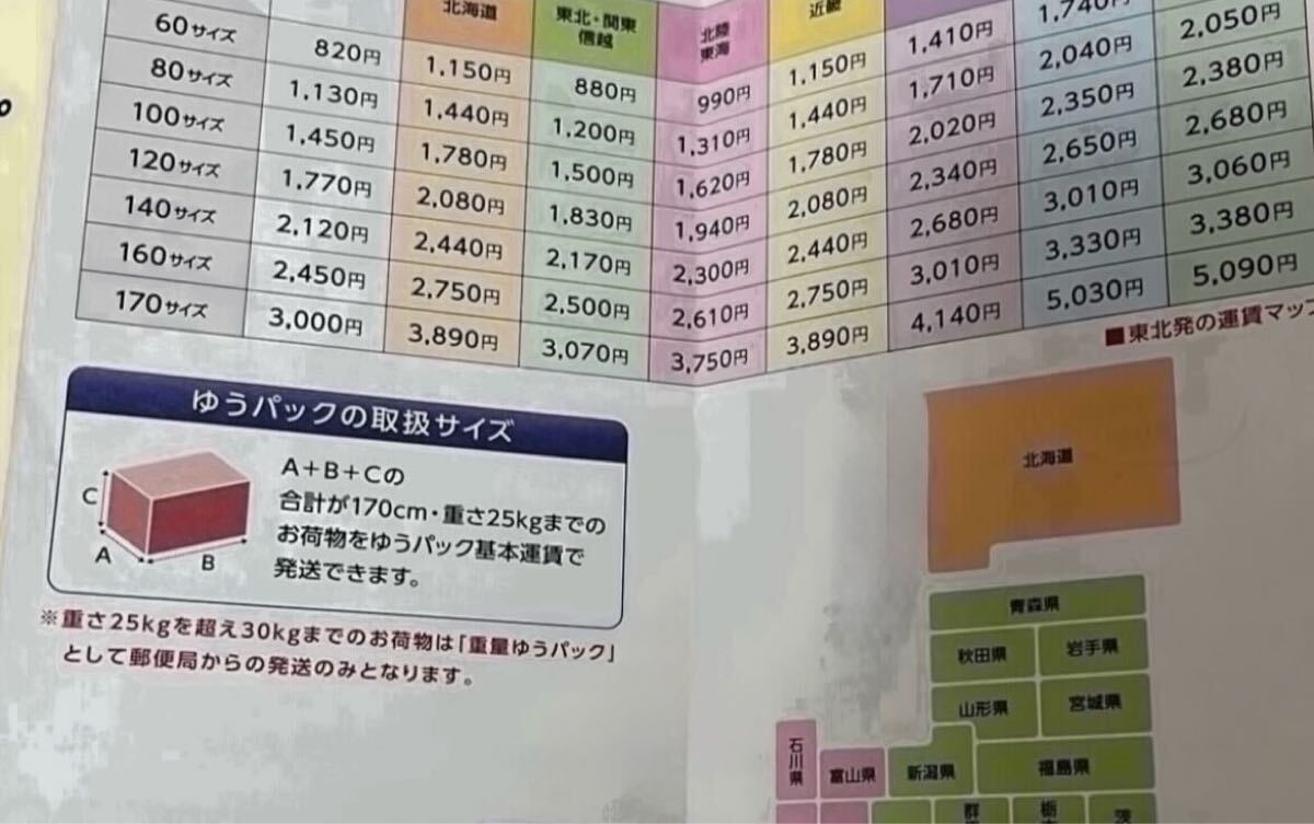 如果合寄打包的商品超过5件,每增加4件,加收人工费用300日元,不足5件按4件计算。