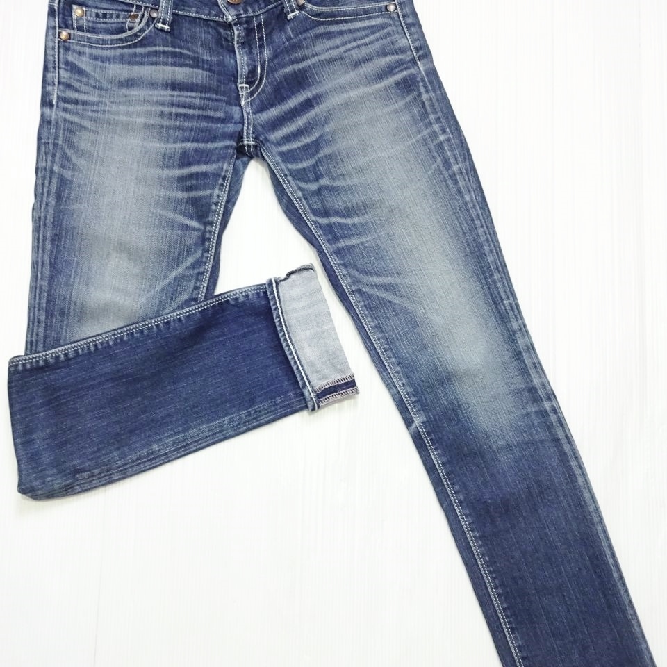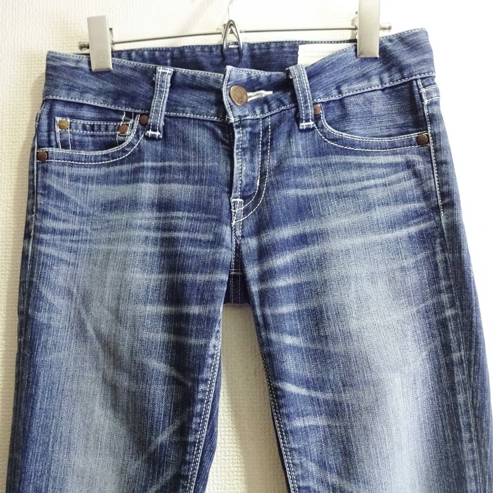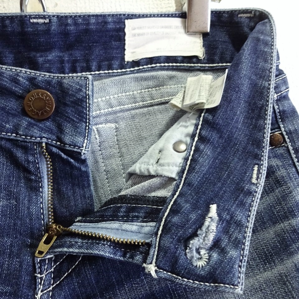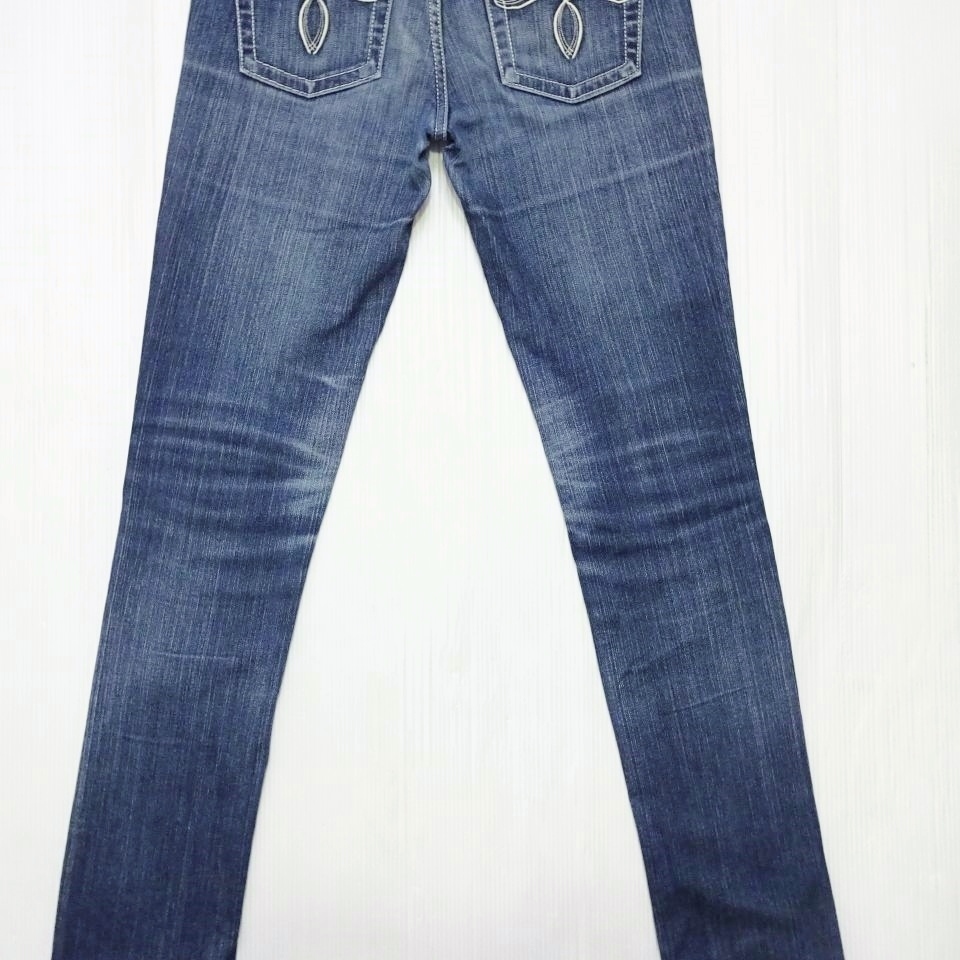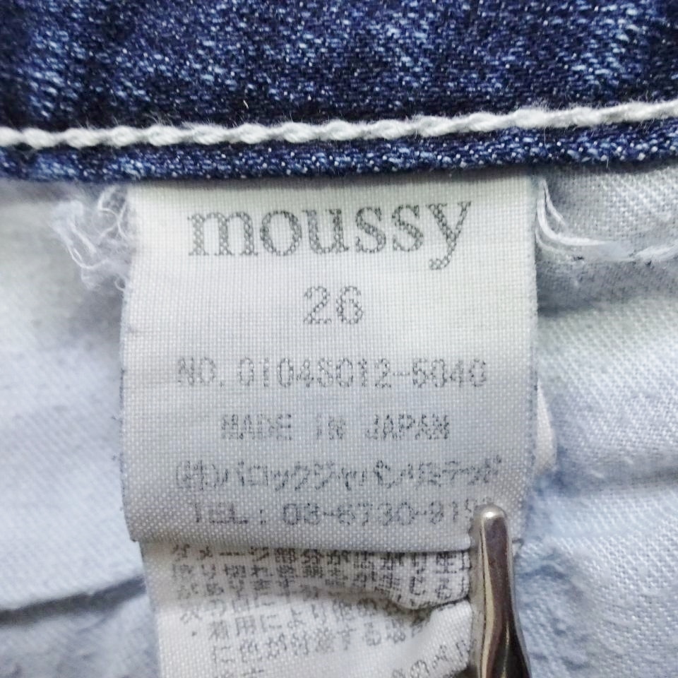 即決★ 送料無★ マウジー パウダースキニー W74cm ストレッチ ホワイトステッチ 藍青 日本製 レディース Sz.26 moussy J226