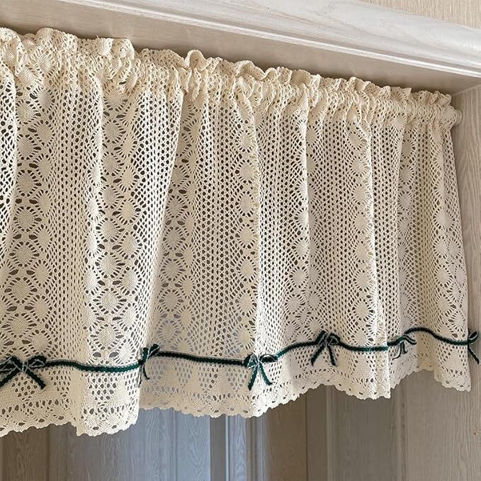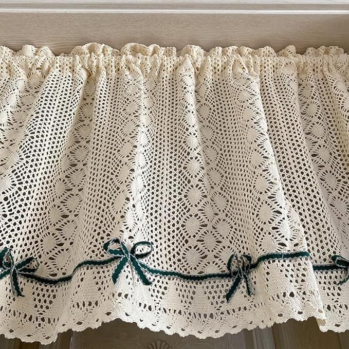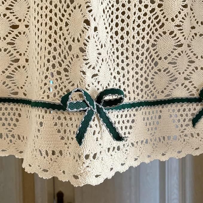 【1枚入り】【横幅150cm×丈90cm】リボン付き レース カフェカーテン 生成り